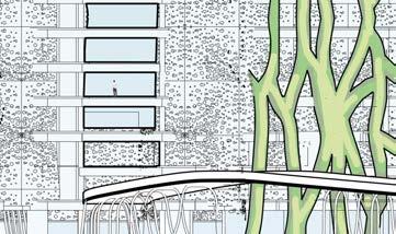 THE PARK FEATURES AREAS WHERE NATURE RECLAIMS THE SPACE, WITH TREES PENETRATING THROUGH THE PARK’S LOWER LEVELS AND CONNECTING SEAMLESSLY TO THE NEIGHBORING PRESERVE.