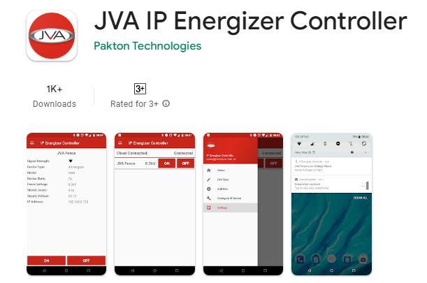 The JVA IPEC (IP Energizer Controller App) system is the recommended interface for remote monitoring. This can be downloaded from either the Google Play Store, or App Store. The simple interface is also used for the JVA MB8/MB12/MB16 Energizer information.