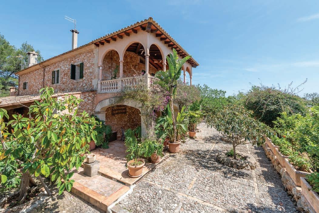 the right is a typical Majorcan eat-in kitchen with a large open fireplace. Also, on this level is an en-suite bedroom. The upper floor has three bedrooms, one with a large terrace. The spacious secluded property has a pool, a barbecue area, and a small orchard with lemon and orange trees. Another small cottage on the property has two bedrooms and a shared bath; making it ideal for hosting guests. This property also has a coveted rental license and an ancient well.