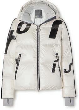 Bundling up on the slopes in Toni Sailer’s Louisa hooded striped quilted ripstop down ski jacket, net-a-porter.com