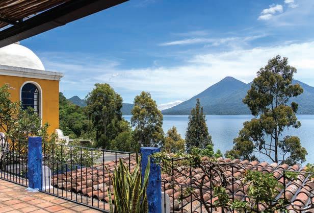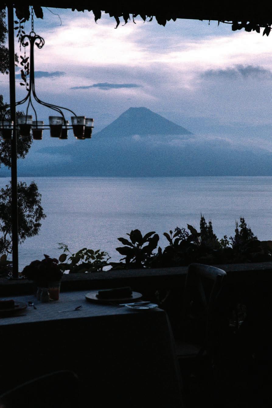 e next morning, we departed for Lake Atitlán where we would stay at Casa Palopó, the Bosch family’s second Relais & Châteaux property, an intimate boutique hotel perched high above the lake. e three-hour drive was beautiful, taking us through highland roads framed by purple wild owers and swaying trees. For those preferring a faster arrival, the hotel o ers helicopter service, landing guests on its private helipad in under an hour. Eventually, we caught our rst glimpse of Lake Atitlán. e lake, Central America’s deepest, is vast and still and encircled by three volcanic peaks—Tolimán. Atitlán, and San Pedro.