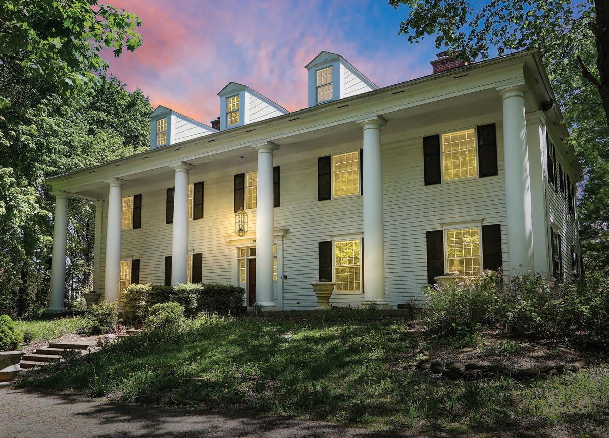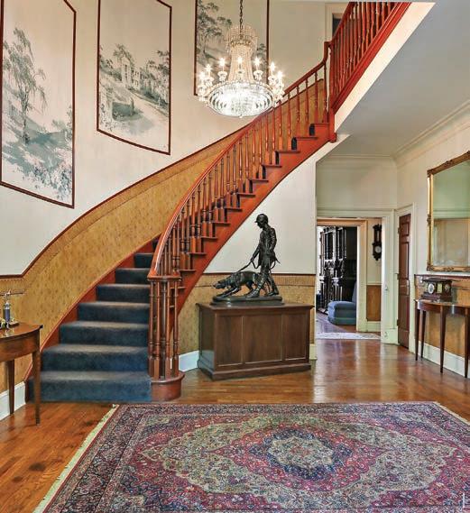 The main residence showcases antebellum architecture, with a beautiful spiral staircase, 10-foot ceilings and ve custom replaces. e spacious two bedroom, two bath coach house o ers a full kitchen, living and dining areas, and three-car garage. e expansive heated in-ground pool