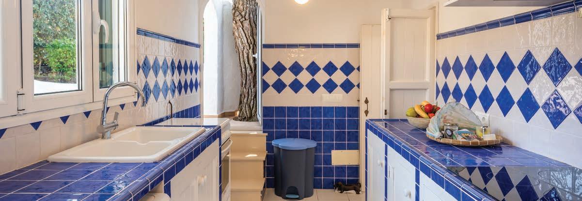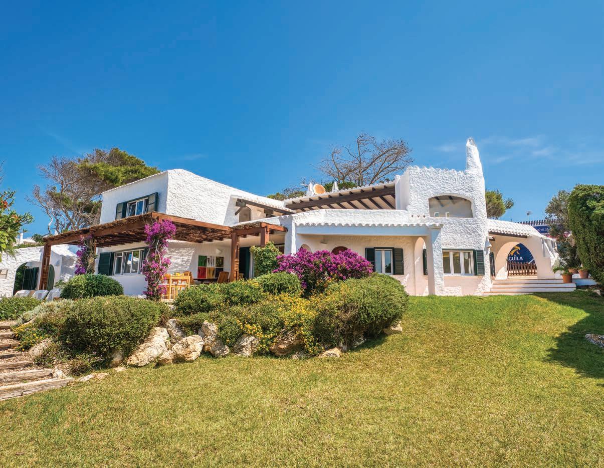 This Minorcan villa is in beautiful Binibeca Vell, one of the most exclusive and sought after areas on the island. On the ground oor is a grand living-dining room with a replace, access onto a porch with a sea view, kitchen,