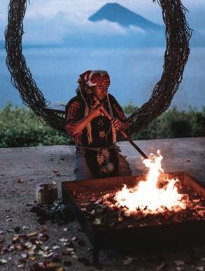 After our pescetarian lunch, we rode the hotel’s private funicular up the mountain—a cinematic ride through a lush garden path—to reach the main property. Climbing a cobblestone footpath, we reached a broad wooden deck just beyond the hotel’s helipad, where we took part in a traditional Mayan ceremony. With volcanoes rising in a perfect ring around us, Tomás, the hotel’s resident shaman, lit a great re encircled with ears of corn and bright petals and then invited us to set intentions. I can’t explain what caused tears to stream down our cheeks or how all six of us felt our collective energy feed the re but it was a beautiful journey of gratitude and re ection. e most powerful moment of the hour-and-a-half ceremony came as Tomás chanted to the wind spirit, and a sudden gust lifted the ames skyward. is was the most emotional ceremony of all my travels—pure, spiritual, and deeply moving.