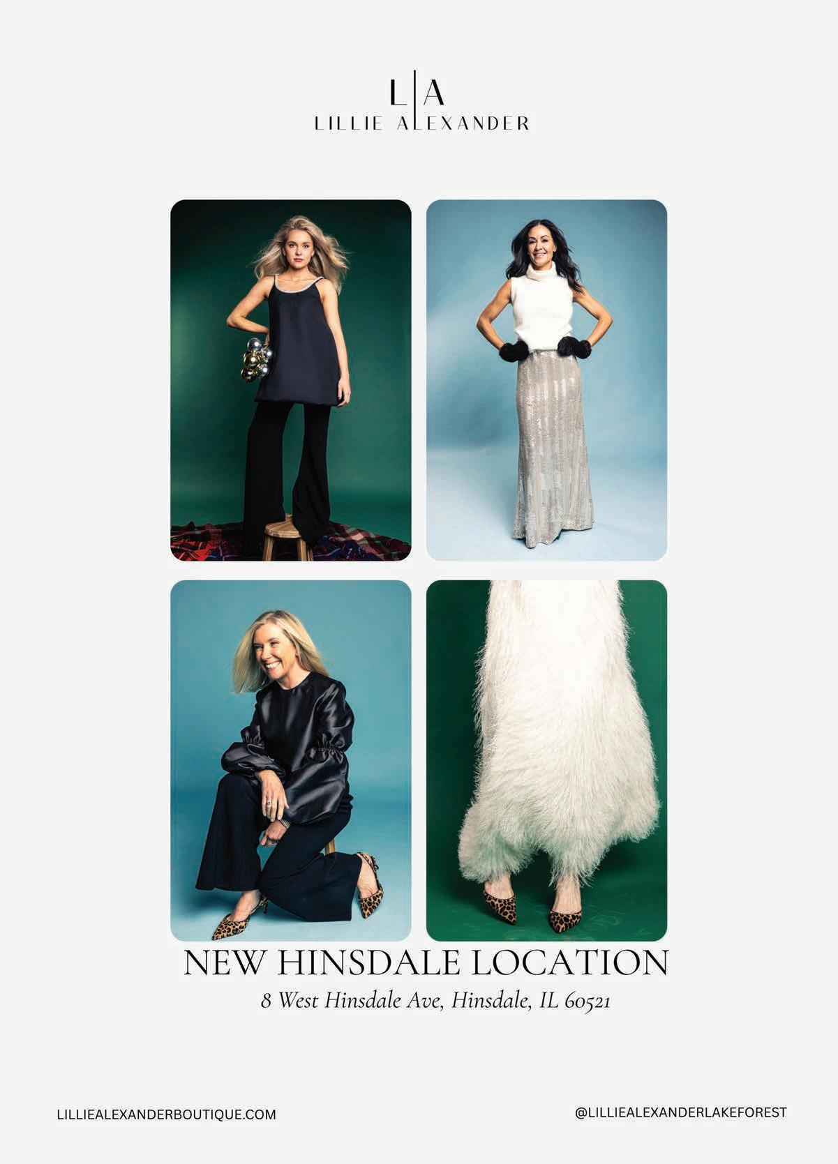 Oh, my, our towns look beautiful! From the homes to Washington Avenue in Hinsdale and Prospect Avenue in Clarendon Hills and our gorgeous shopping destinations, Oakbrook Center and Burr Ridge Village Center, every tree and ornament is wonderful, filling the longer nights with hope. ose extra hours of darkness offer extra time to read this lively issue when you need a break from wrapping.