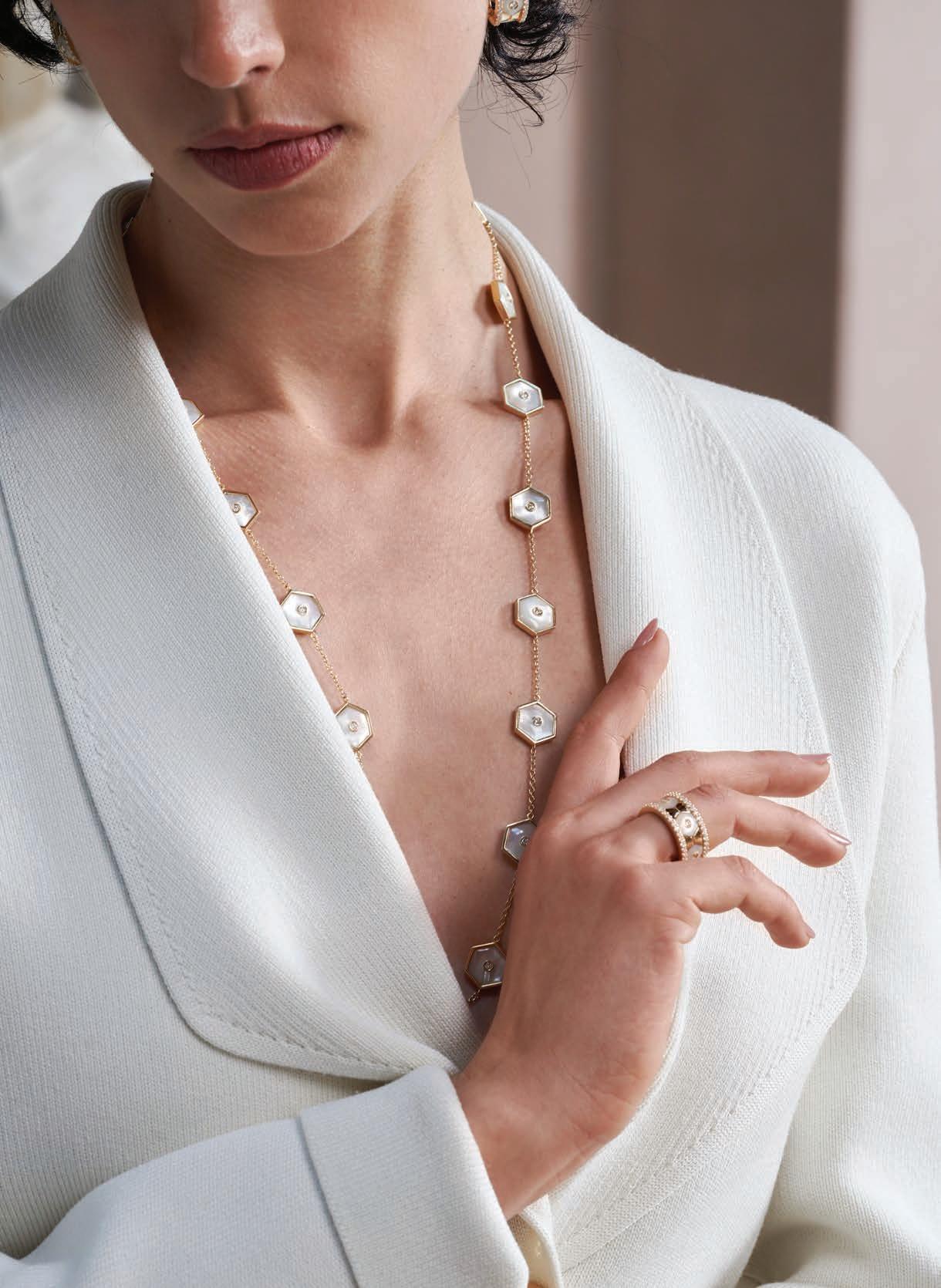 Combine the warmth of yellow gold, the sleek sheen of white gold and the romantic glow of rose gold for a look that feels elevated and on-trend. Layering different tones adds depth and individuality, allowing each metal to beautifully complement the others. Start with your preferred base and accent it with contrasting hues for a polished, modern finish.