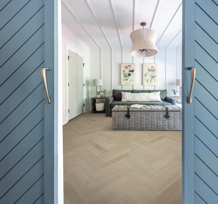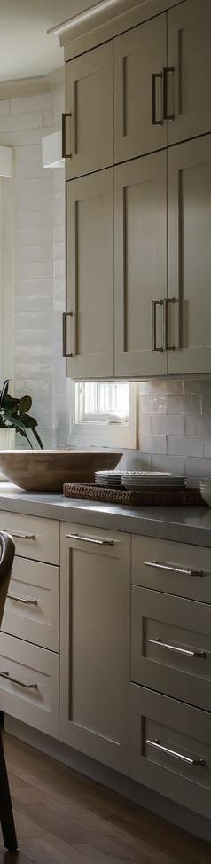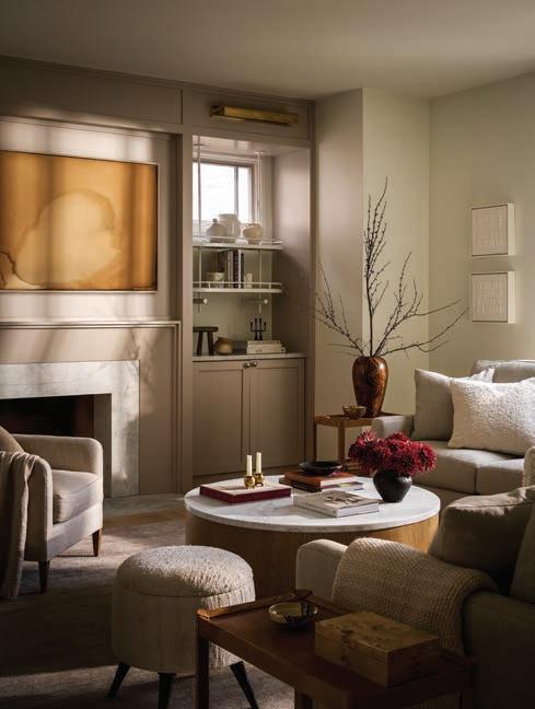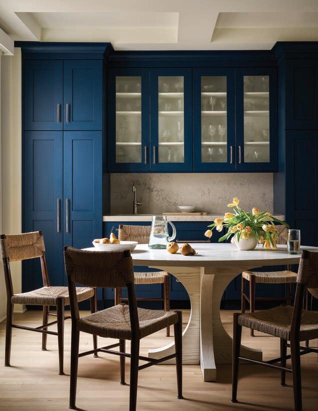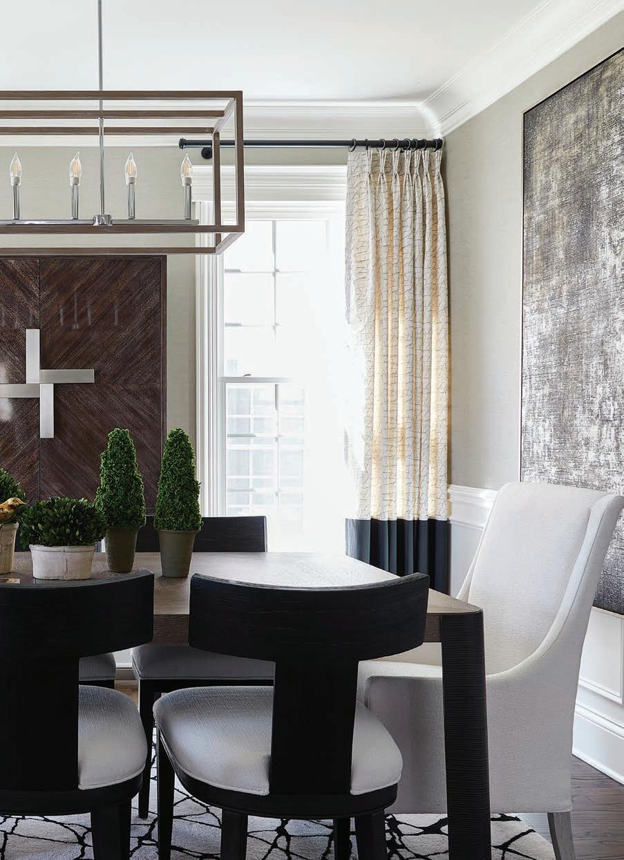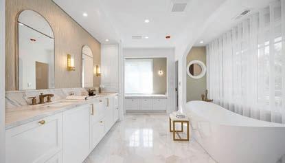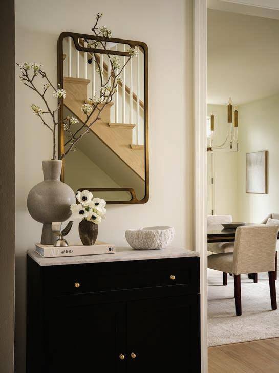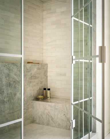 Secondary spaces, such as the laundry room and mudroom, were equally well considered. e two were located in same space and it wasn’t functioning for the family, so Wagenbach redesigned the mudroom with storage for bags, shoes, and the sons’ sports gear out of sight. e laundry room was relocated upstairs, where marble-andporcelain floors make washing and sorting clothes an elevated experience. Nearby both sons’ rooms got a refresh along with their shared bathroom.