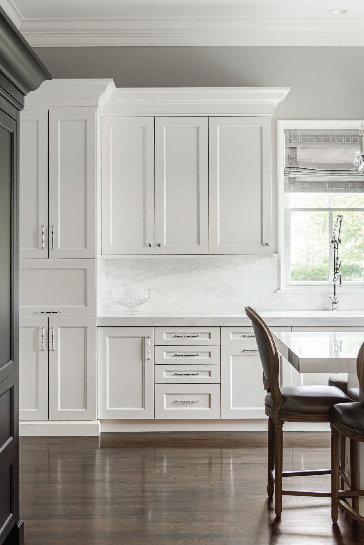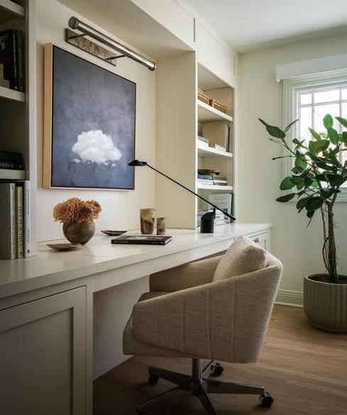 Susan and Ryan Laurenti never planned to completely renovate their Hinsdale home. ey’d done some minor updates after purchasing it— modernizing the kitchen, updating the primary bedroom and bathroom—and they were just looking to do another small change. e couple envisioned transforming the unused attic space above their garage into a dedicated office and workout room. An architect had already begun exploring how the upper level could be reconfigured when Susan reached out to designer Diana Wagenbach for her input.