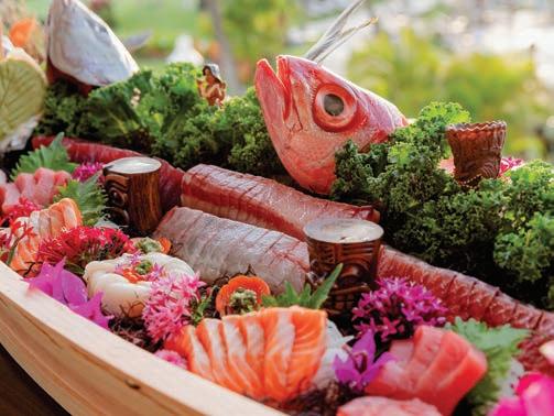 (presented with local edible flowers and seaweed), to a hot rock where guests cook a simple piece of protein tableside. Paired with signature cocktails like the smoky, citrusy Aloha, Vaqueros, featuring the Hawai’i-made Waikulu Smoke Pepa Agave Spirit and rimmed in black Hawaiian lava salt, it makes for a transformative culinary experience.