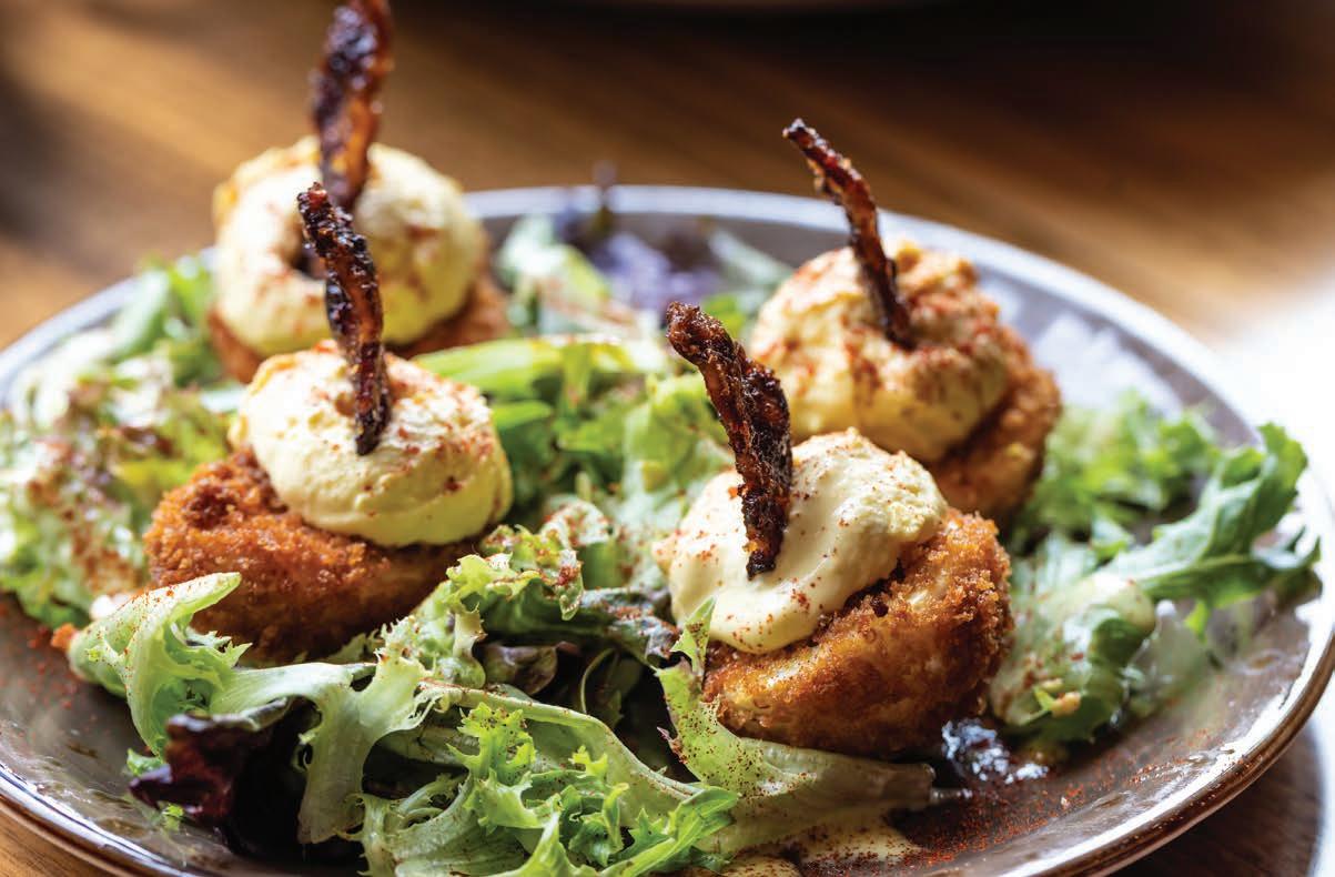 There’s nothing overtly fancy or avant-garde here. But that’s what makes it appealing. It’s like eating at your local country fair. Consider the kitchen’s fried deviled eggs. Addictive as sin, those things. Deep fried egg whites topped with a conventional sweet-mustard cream. I appreciate the fact that there’s no jiggle, no mushiness, to these little devils. They crunch like chicken skin when you bite into them but remind you of Labor Day lunches and family picnics spent with the family closer to home.