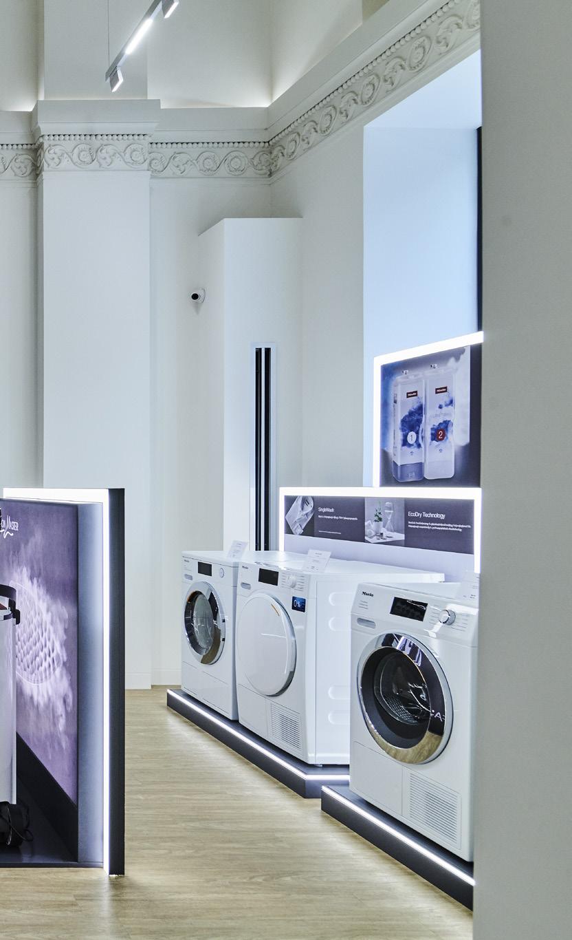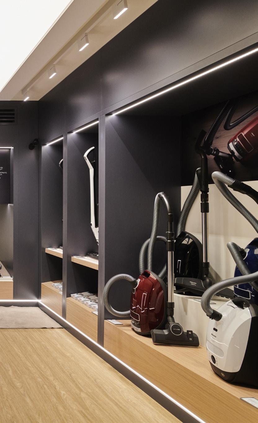 tailored to highlight each product as a unique element. Narrow beams to enhance details, wider ones to ensure uniform illumination. This integration of precise lighting and discreet audio playback allows retailers to elevate their spaces beyond conventional setups. The result is an environment that feels authentic, refined, and aligned with the brand’s identity, a clear distinction between an ordinary store and a thoughtfully curated retail experience.