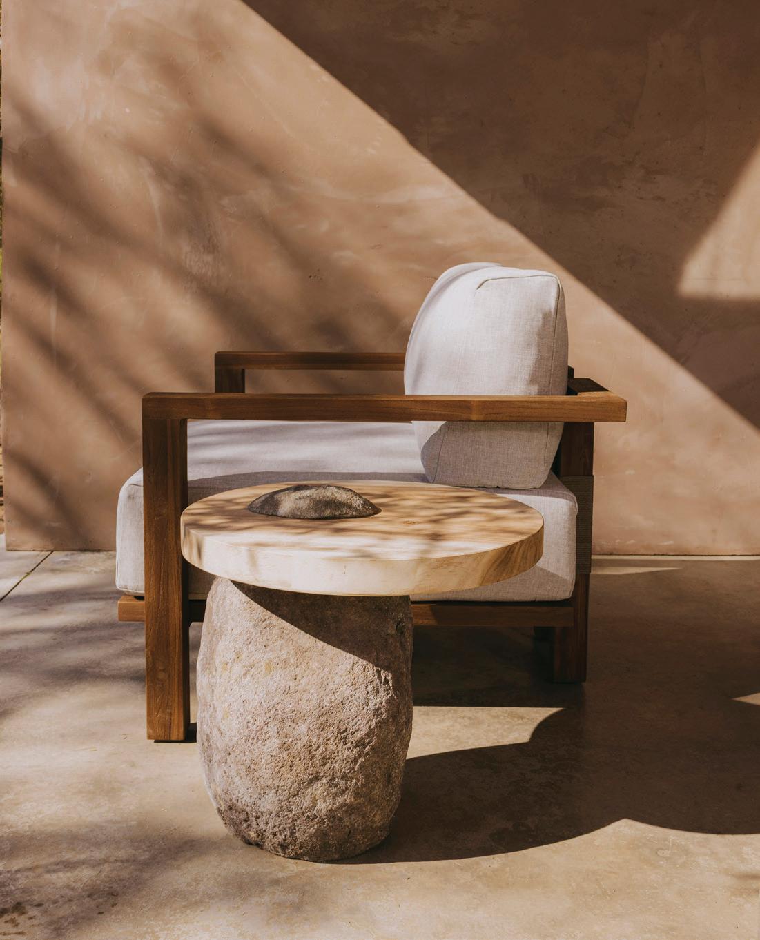 and rivers that lead to open oceans. Through hardship and dry spells, a new kind of landscape is born – one we can call home. Smoke finishes on hand-selected pieces of teak, rich in oil and confident in grain, mimic the mountain curves through rigid frames. These elemental pieces are designed to age with the land – weathering and wearing to show the markings of their journeys.