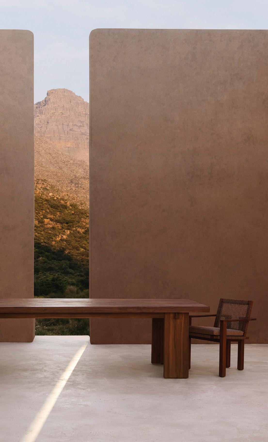 Founded in contrast, the materials and textures in our latest outdoor collection are a metaphor for harmony and balance. Through this opposition, beauty is created. The tension of the sun disappearing behind the horizon line, the jagged mountain’s edge that frames a valley, the refreshing dusk air that cools the soil after a sweltering day – that is where beauty rests. Rare South African terrains, speckled with fynbos and perennial plants define a unique landscape. One that contains multitudes. Unlike any other, this land finds itself defined by a symbiotic relationship between predator and prey, drought and rain, dawn and dusk. Their dialogue carrying over valleys, ancient rock carvings,