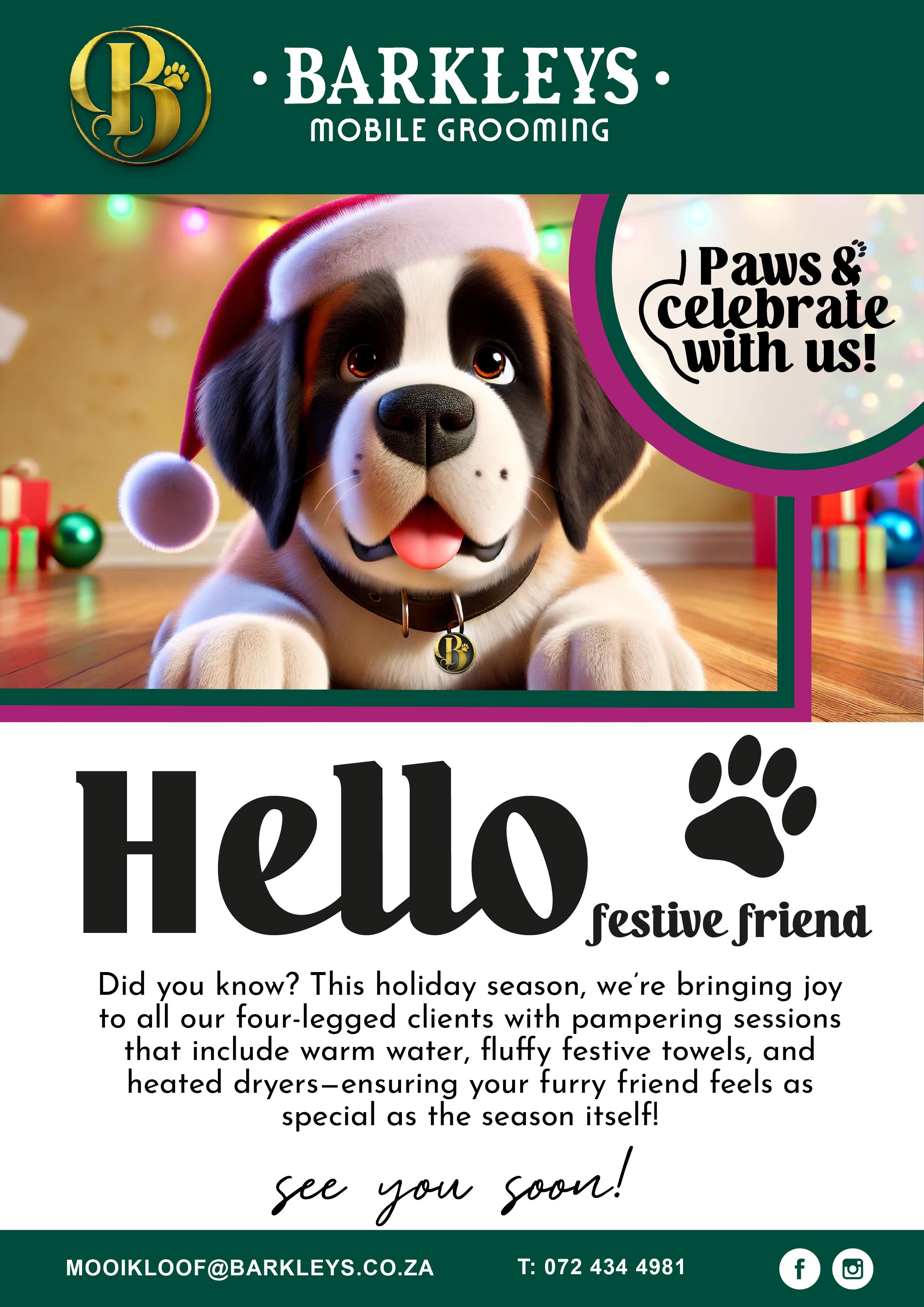 • Paws & Claws Pet Sitting Offering reliable and caring pet-sitting services right here in the Estate. Micha comes to your home to make sure your pets are looked after, loved, and comfortable while you’re away. Contact Micha on 082 962 8255