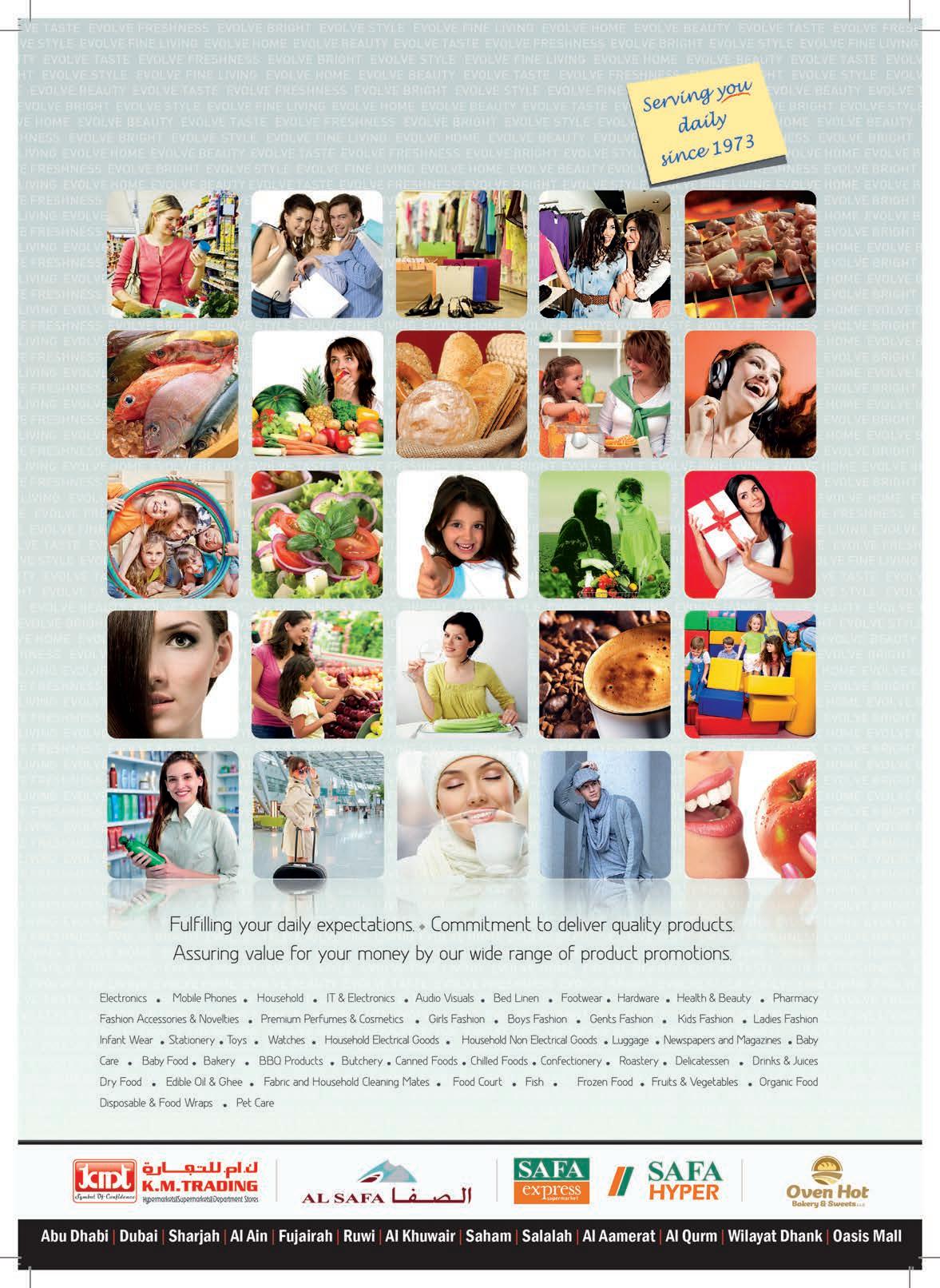 AL-AIN-HILI SANAIYA. TEL: 03 7629299 Scan here for new K.M.HYPERMARKET store location. HESSA BINT MOHAMED STREET INDUSTRIAL AREA, AL AIN. TEL: 03 7211022 Scan here for new K.M.HYPERMARKET store location. WEEKEND DELIGHTS ﺔﻴﻤﻜﻟا دﺎﻔﻧ ﻰﺘﺣ وأ 2023 ﻮﻳﺎﻣ 7 ﻰﺘﺣ 2023 ﻞﻳﺮﺑأ 27 ﺦﻳرﺎﺗ ﻦﻣ ءاﺪﺘﺑإ ضﺮﻌﻟا يﺮﺴﻳ Promotion valid from 27th April 2023 to 7th May 2023 or until stock last. ﺔﻓﺎﻀﻤﻟا ﺔﻤﻴﻗ ﺔﺒﻳﺮﺿ ﺔﻠﻣﺎﺷ ﺐﻴﺘﻜﻟا اﺬﻫ ﻲﻓ ﺔﻋﻮﺒﻄﻤﻟا رﺎﻌﺳ ا PRICES PUBLISHED IN THIS BOOKLET ARE VAT INCLUSIVE www.facebook/K.M.TradingCompany CAMARA EVOLVE POUR HOMME 90 ml (Per Pc) BASHIR MILK POWDER 2 kg IMPERIAL LEATHER SOAP 125 g X 6 PCS TIFFANY QUANTA MINI SNACKING MIX 314 g V2 DETERGENT POWDER 3 kg SUPERSUN COOKING OIL 1.5 LITRE COMFORT FABRIC SOFTENER 3.9 LITRE (Per Pc) MIE SEDAAP NOODLES 75 g X 5 PCS (Per Pack) فلوفا يلاجر رطع لم 90 اراماك ةعطقلل بيلحلا قوحسم غك 2 ريشب رذيل لايربمإ نوباص غ 125 × 6 ةتلاوكوش ةبجو غ 314 ينافيت ةلكشم ليسغ قوحسم يف سبلاملا غك 3 - 2 ربوس خبطلل تيز رتل 1.5 نص ةشمقلأا معنم رتل 3.9 ترفموك ةعطقلل باديس يم زلدون تاعطق 5 × غ 75 ةوبعلل 19.95 AED 32.95 AED 19.95 AED 9.95 AED 7.95 AED 8.95 AED 9.95 AED 1.95 AED 39.00 AED WAS 38.95 AED WAS 28.45 AED WAS 17.25 AED WAS 10.90 AED WAS 14.95 AED WAS 13.50 AED WAS 6.95 AED WAS