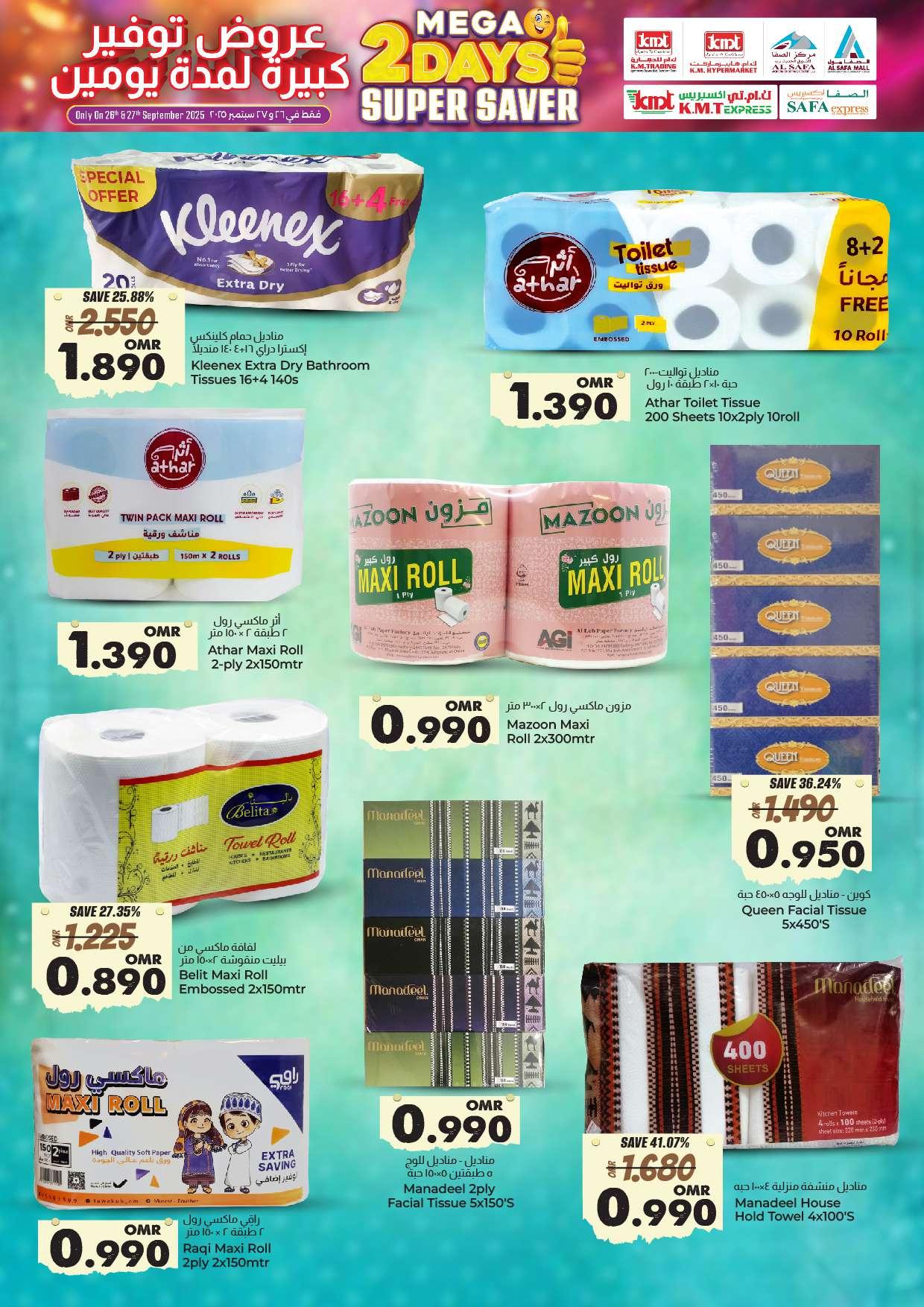 #Mega2DaysSuperSaver #KMTrading #AlSafaMall #SafaExpress #OmanDeals #BigSavings #SuperSaverOffers #GroceryDealsOman #HouseholdEssentials
