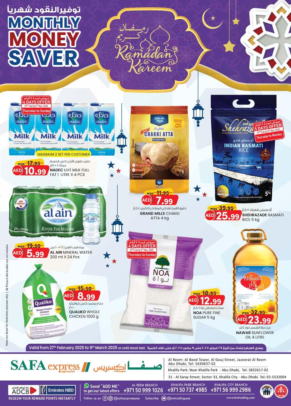 Monthly Money Saver at Safa Express Khalifa City, Park & Al Reem Edition 27th February 2025 - KM TRA
