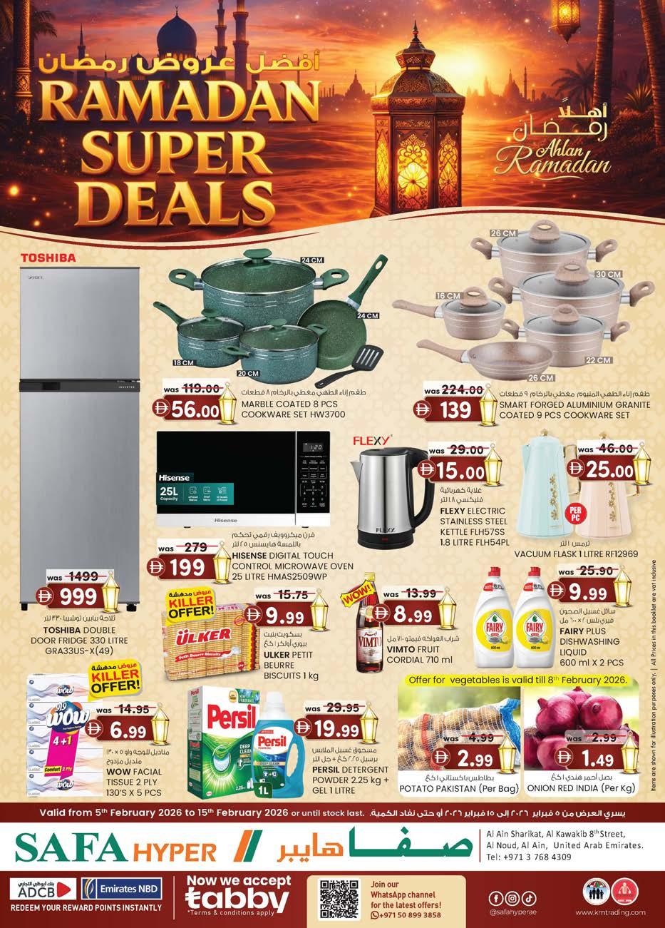 Ramadan Super Deals 2026 at Safa Hyper in Al Ain, UAE. Shop groceries, kitchenware, home essentials, electronics, and daily needs at special Ramadan offers from 5 to 15 February 2026.