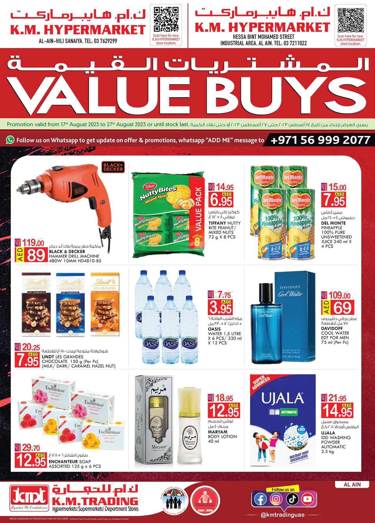 KM Hypermarket offer the Value Buys promotion for Al Ain stores to save money. Visit our K M Hypermarket stores in Hili Sanaiya and Industrial Area, Al Ain to take advantage of these incredible deals.