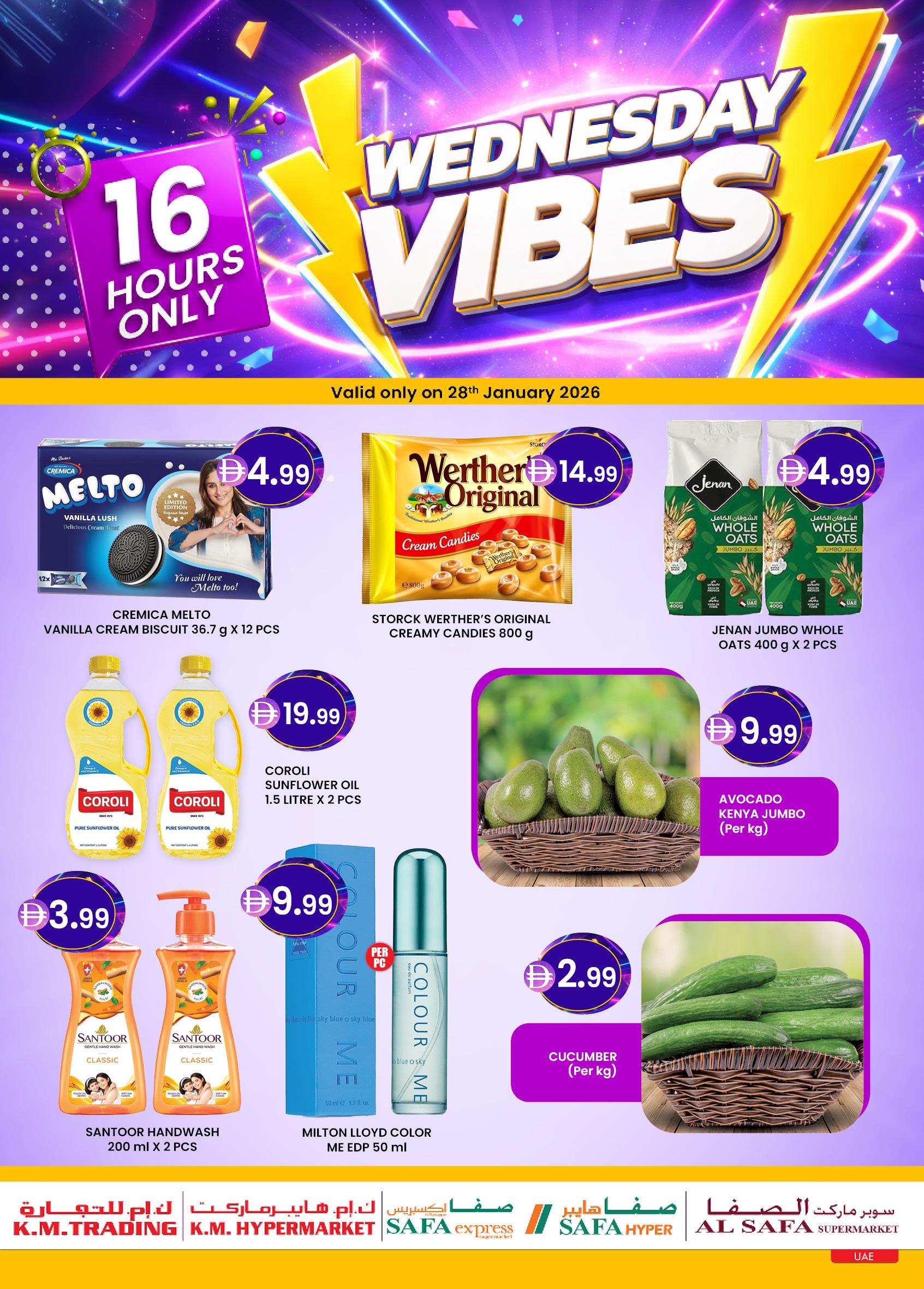 Make your Wednesday special with 16 hours of exclusive offers at K.M. Trading, Safa Hypermarket, Safa Express, and Al Safa Supermarket across the UAE!
