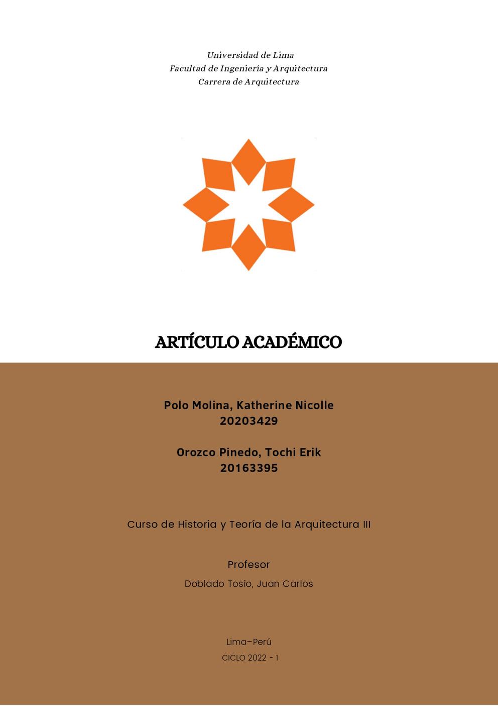 Facultad de Ingeniería y Arquitectura Carrera de Arquitectura Área de Historia y Teoría de la Arquitectura Ciclo 2022 2