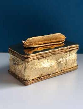 De focus van conceptontwerpster Mickey Philips ligt op het ontwikkelen van maatschappelijke concepten, die zich vertalen in tastbare en benaderbare ontwerpen. Een speelse balans tussen betekenisvol design en bruikbare kunst. Philips wil mensen verbazen en creativiteit stimuleren. Kenmerkend is het gebruik van onderscheidende materialen, vormen en kleuren. Deze ‘Golden Tompoes’ is voorzien van 24 karaats goud en er zijn er slechts 50 van gemaakt. Die verdient een hele bijzondere plek om te shinen!