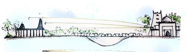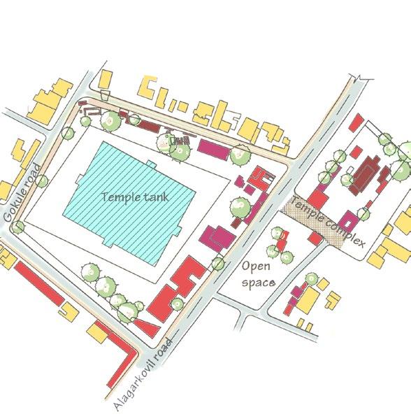 The proposal is an attempt to regain the lost significance of the place .the temple was built by the Nayaka with a direct visual contact from his palace. Due to rapid urbanization this feature was lost. Elements to visually connect the temple with the place is an important design element. The challenge while designing was to redesign the space without disturbing the festival procession and the religious character of the place. After studying the overall structure plan for redesign ,a loop around the temple was proposed.