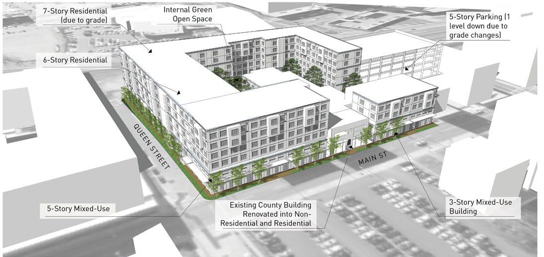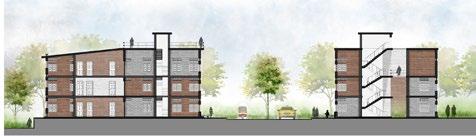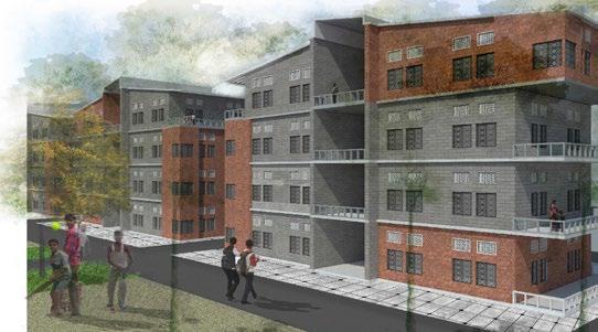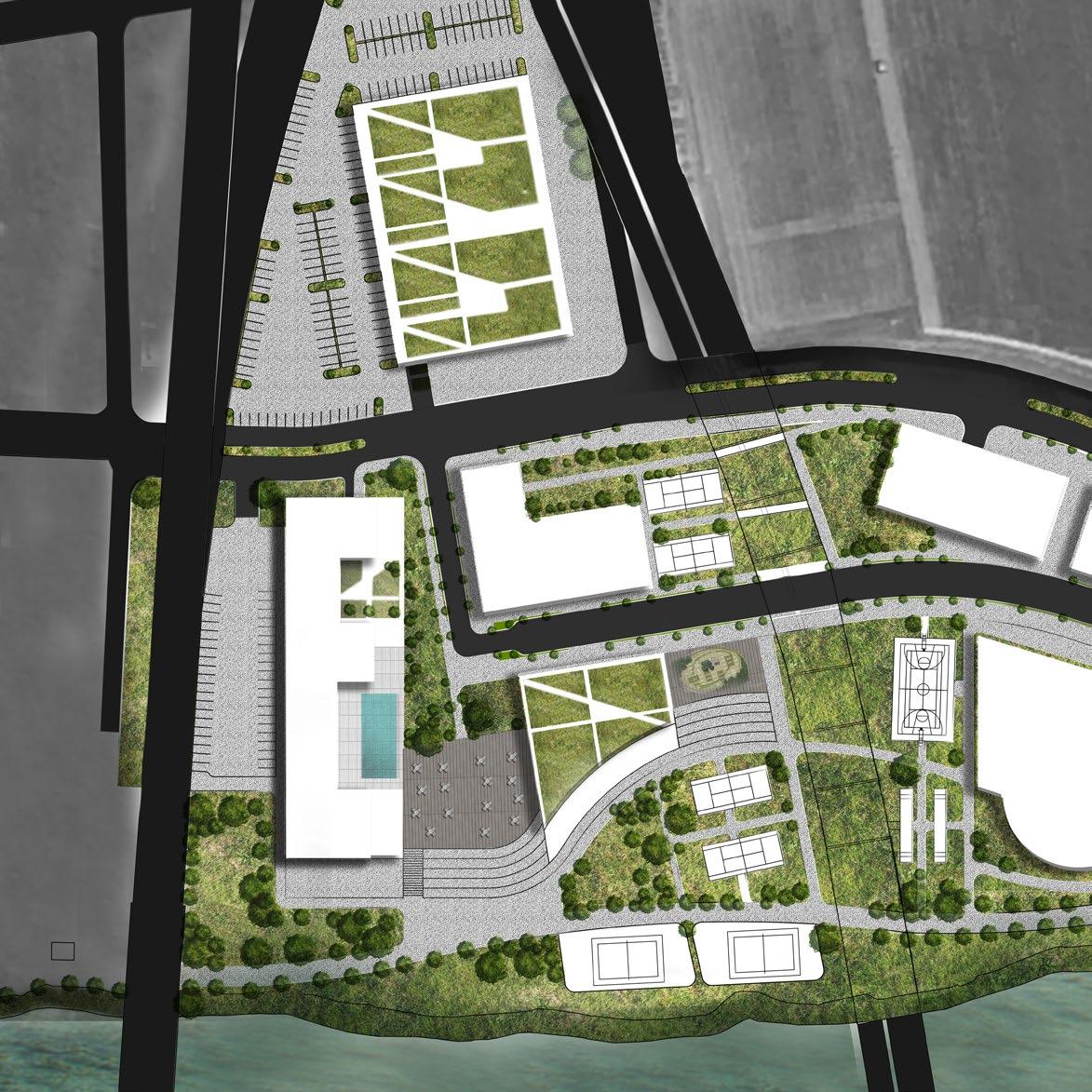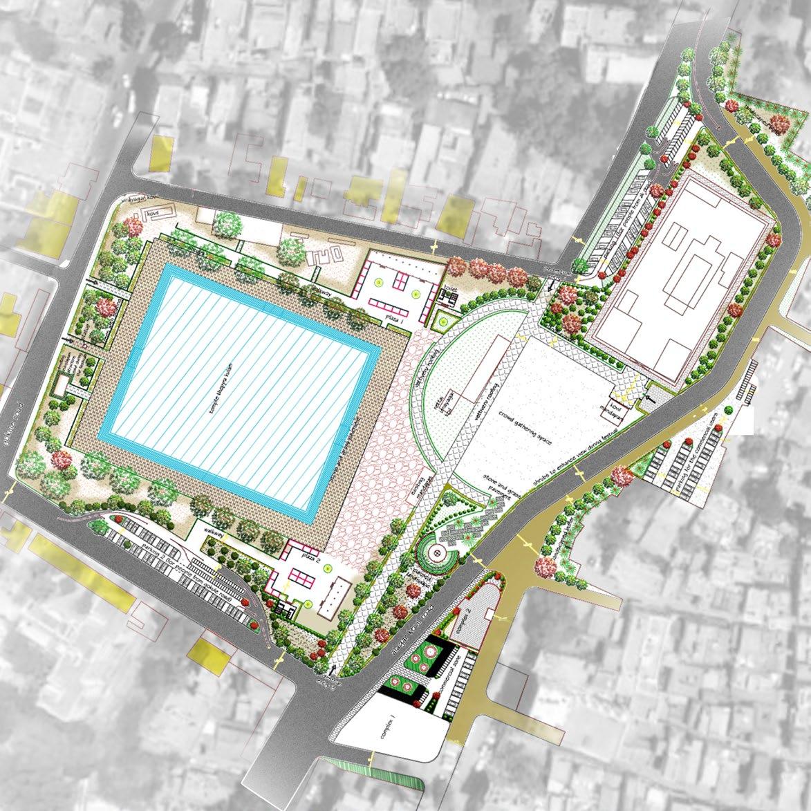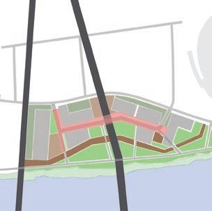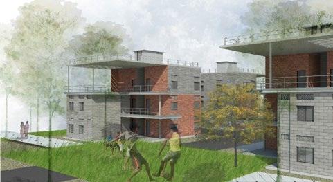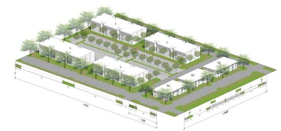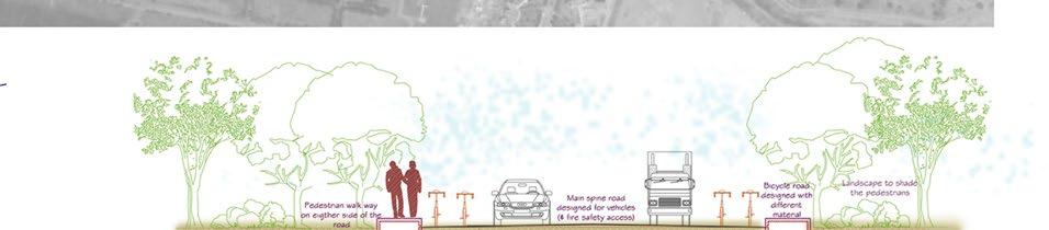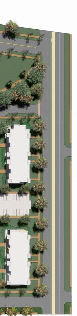 The development included mixed-income and diverse housing typologies like garden apartments, townhouses, moderateintensity multi-family corridor apartments and lower-intensity multifamily-housing. The whole concept centered along a green-trail that connected the aqueducts and pedestrian trial along it. The development has multiple pocket parks spread across the site to increase access and usage of the planned open spaces and increase land likability. The first phase construction was along the main entry with moderate-intensity garden apartments and a CLT clubhouse/amenity block. The framework plan is a guide to regulate development and keep the overarching urban design principals of the development intact.