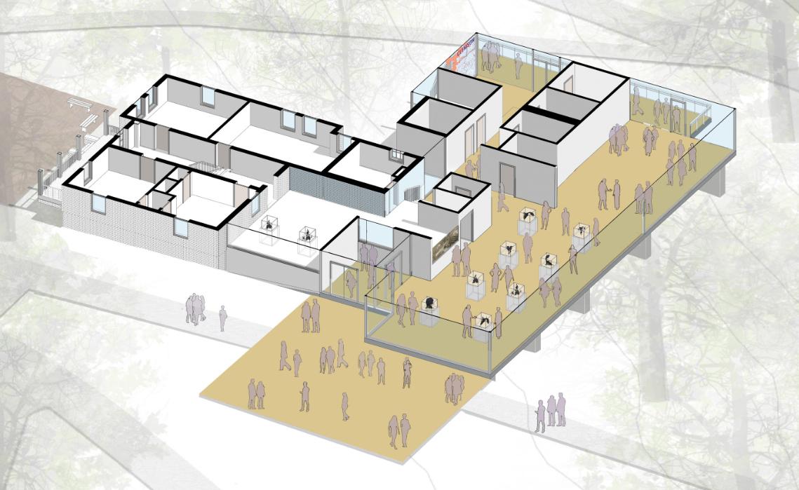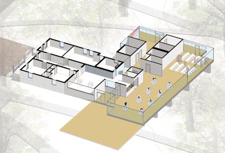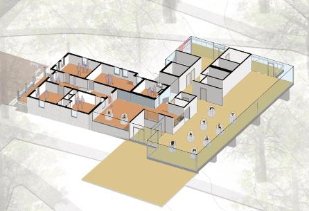 • The studios in the first level are cantilevered) to enhance the lake view and leaving the ground floor for open and shaded for the workshop space.
