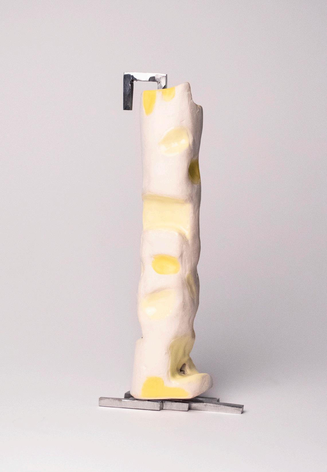 In my concept I explore the relationship between the constrictions of society and a shared female body. In the beginning of my process I saw our society as something rigid, a construction which has us in a tight grip. But along the way I realised that this is not the case. Rather, I began to think of it as a conversation between what is shaping and what is being shaped. Women are not only being shaped and society is not only doing the shaping, we are simultaneously shaping each other. And if we and society are shaping each other, it means we have the possibility to transform it, maybe even into something entirely new. The colour yellow represents the attention we must pay to this — to the changes that need to be made, to acknowledging the changes already made, and to the possibility of changing everything.