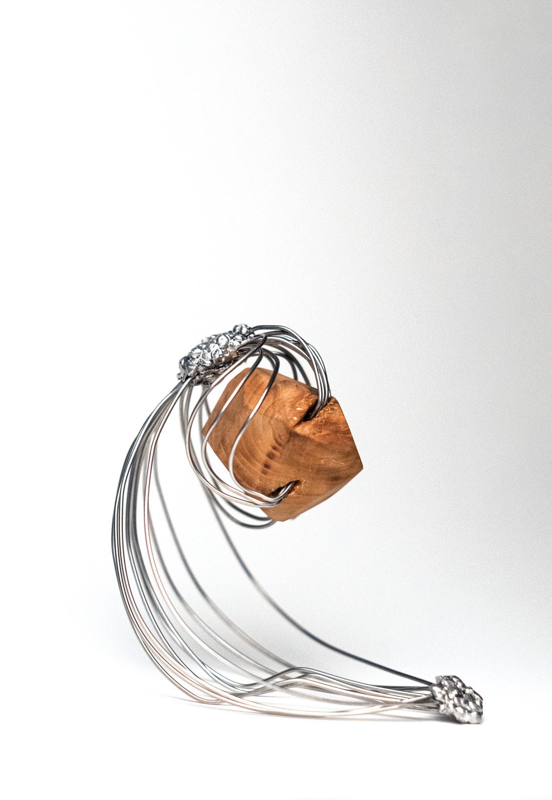 By informing the public of the issues women face, they unite people to work towards securing equal rights, opportunities and importance. The steel represents feminism, and the wood, society. The steel lines move together in a calculated uniform manner, surrounding and gripping onto the structured wooden shape. The trophy symbolizes women uniting and supporting each other in protest against society’s standards.