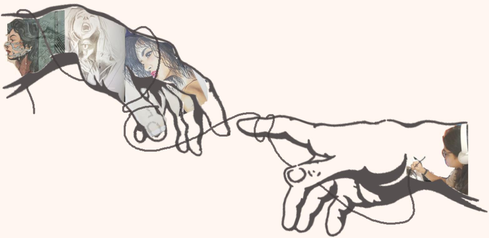 Thisportfolioshowcasesavarietyofpaintinganddrawingmediums,primarilyoncanvasor paper Theseincludeacrylics(mostcommon,usedinlargerworks),oils,softpastels,andpencil sketches.