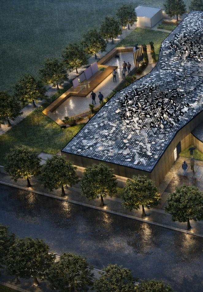 • Sculpted perforated roof to filter natural light