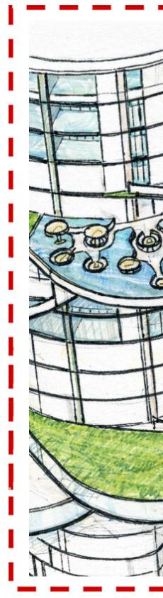 • Organic massing integrated with stepped public plaza