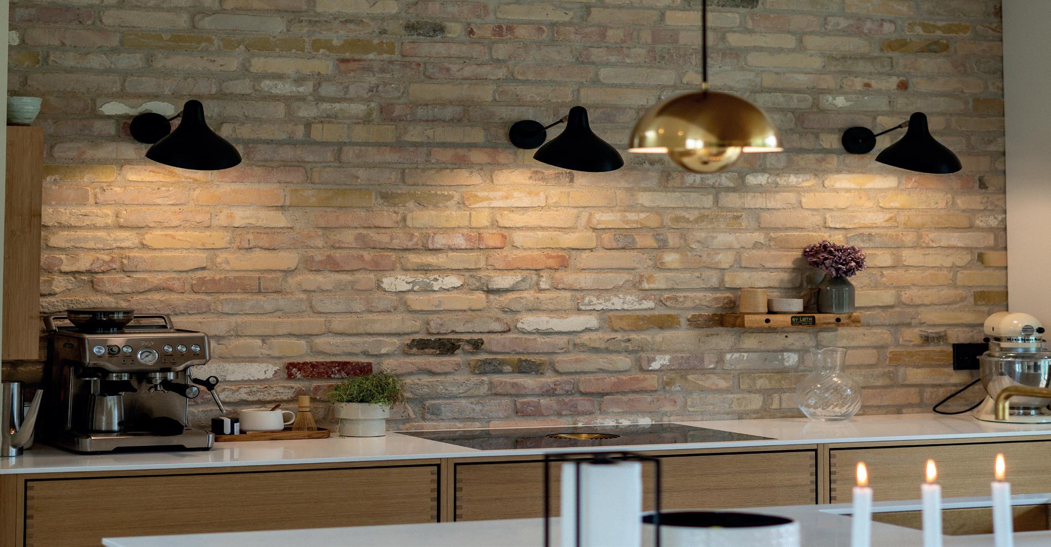 ”Vi valgte den gule genbrugstegl, fordi vi var bevidste om, at vi byggede nyt, men ikke ønskede, at huset skulle se nyt ud. Det skulle ligne alt andet end et nybyggeri – man skulle kunne mærke, at der var sjæl i det. Selvfølgelig er der også et bæredygtigt element i at bruge genbrugsmaterialer, men for os handlede det mest om strukturen og varmen i overfladen. Murstenene har så meget spil og karakter, som giver huset liv.”