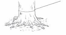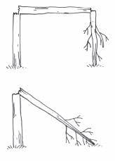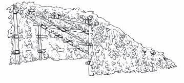 • Bue ungtrær mot hverandre (uten å hugge dem) og danne buer bak hverandre som presenningen kan trekkes over