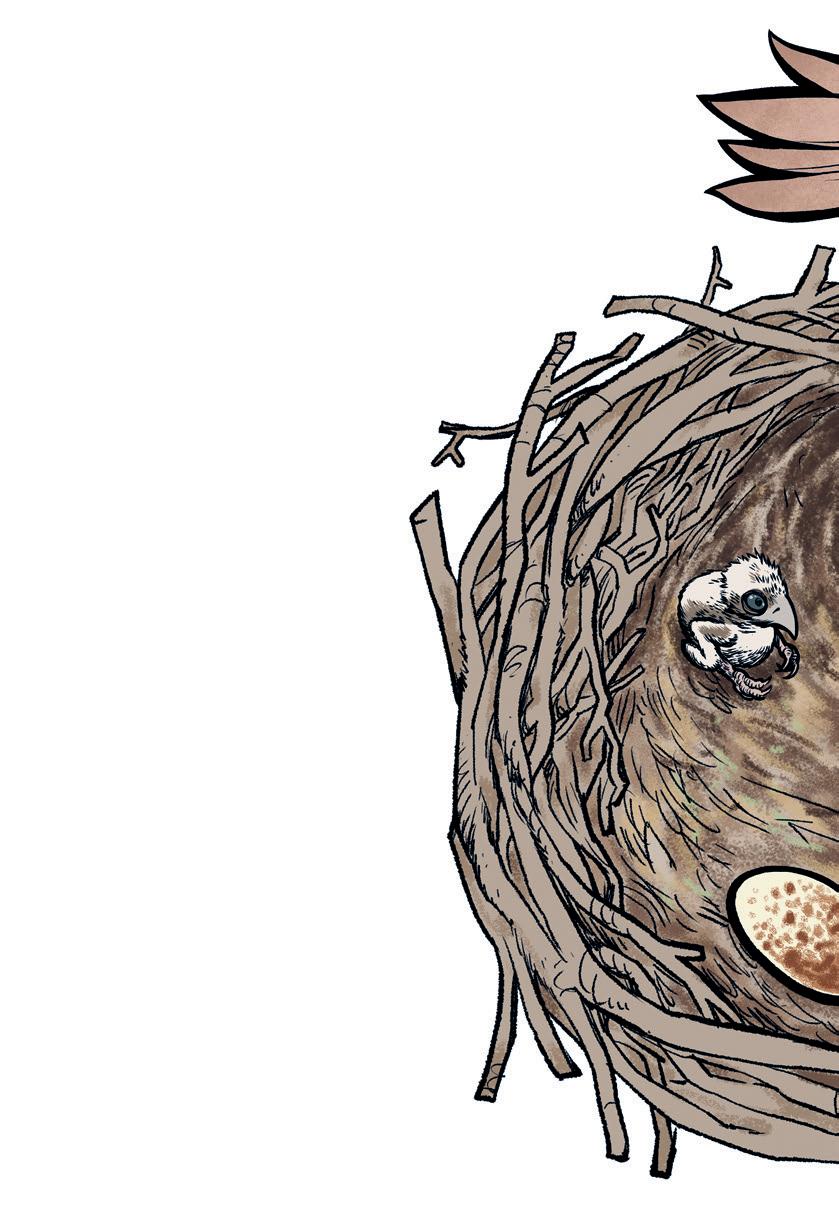 Han er urolig og kjenner at det er på tide å reise. Snart skal han bort fra alt sammen. Bort fra reiret og bort fra familien. Han trenger dem ikke lenger. Selv om han ikke er voksen ennå, skal han klare seg selv.
