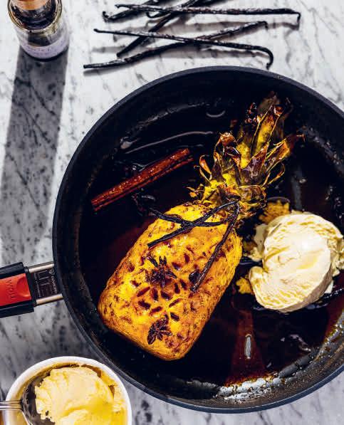 Harissa lam med aprikos, pistasj og granateple 146 Helstekt blomkål 245 Hjemmelaget paneer 250 Hong shao rou 180 Hønsefrikassé 184 Hønsekraft/kyllingkraft 230 Hønsesuppe med melboller 202 Huevos rancheros med padrons 176 Hurtigsyltede reddiker 243 Hurtigsyltet rødløk 242 Indisk krydret ris 233 Ingefær og vårløksaus (til Ssam ++) 239 Jordskokkpuré/ saus 246 Kalvefrikassé med kapers og oliven 92 Kalverull med tomat, spinat og artisjokker 102 Kalveskank med løksjy 110 Karamellisert ananas med vanilje og brun rom 224 Kimchi 244