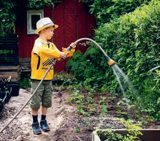 Mange av plantene i kjøkkenhagen har grunne røtter. Derfor er det viktig å vanne regelmessig. Og hvorfor ikke ta barna med på denne oppgaven?