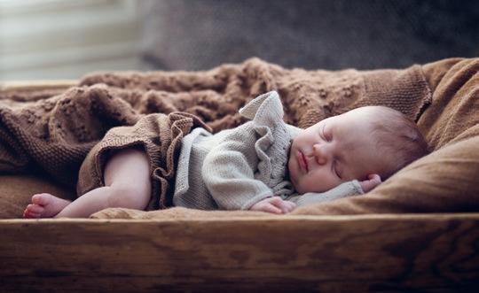 En dress med knyting nede for at babyen skal føle seg trygg og varm.