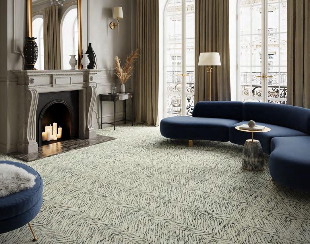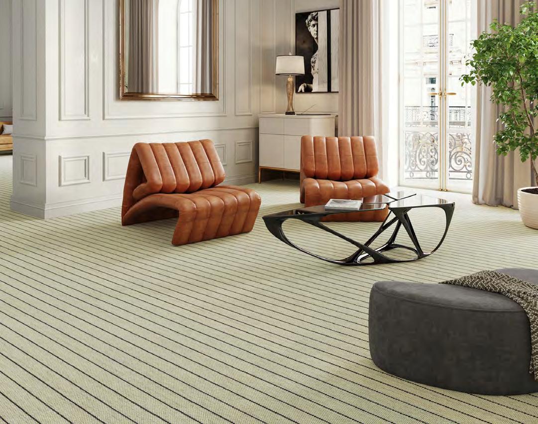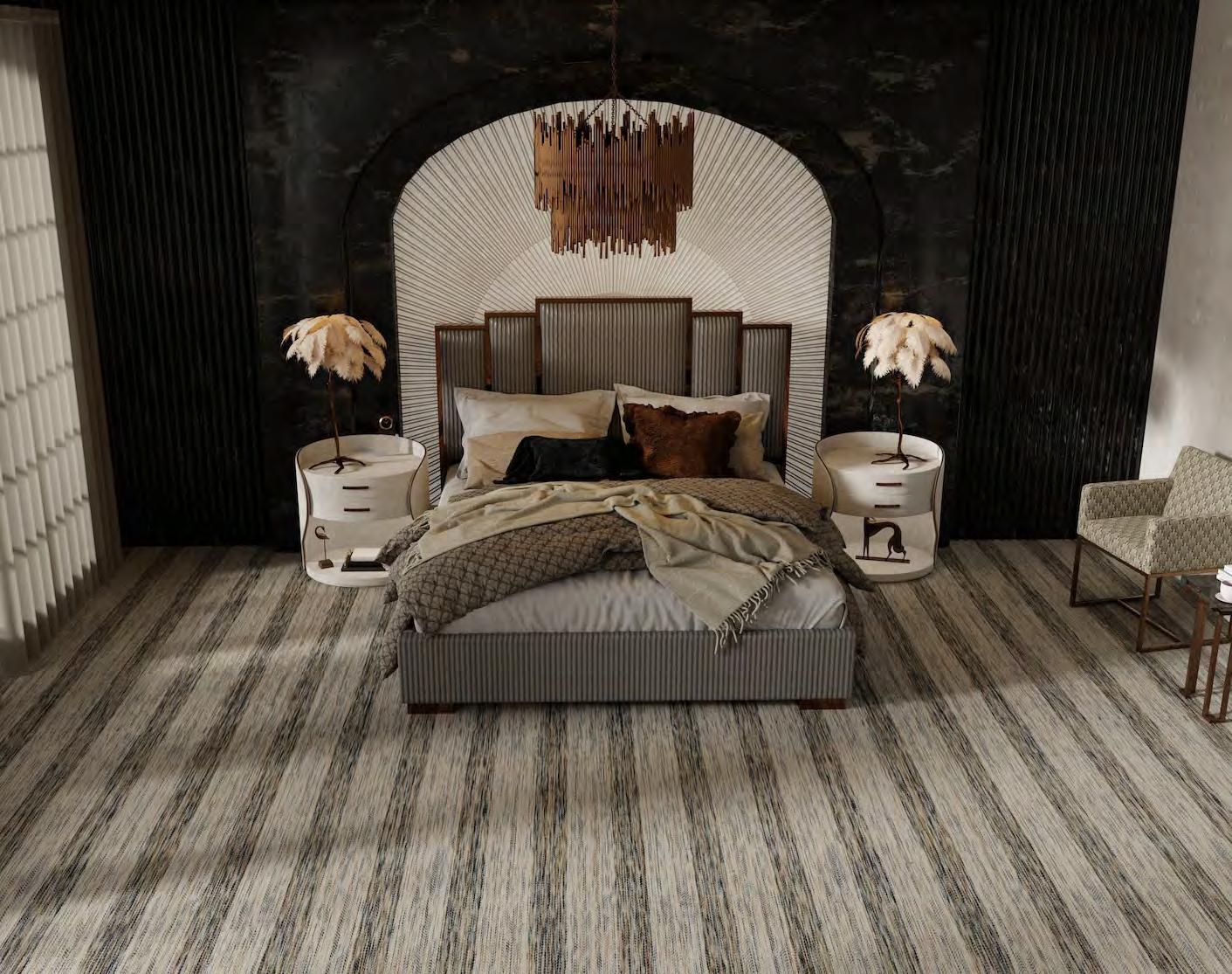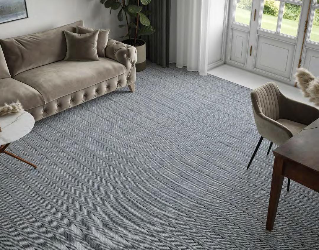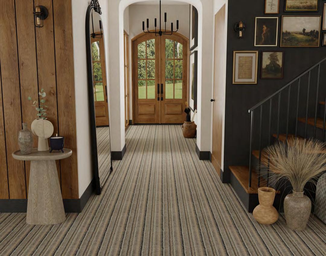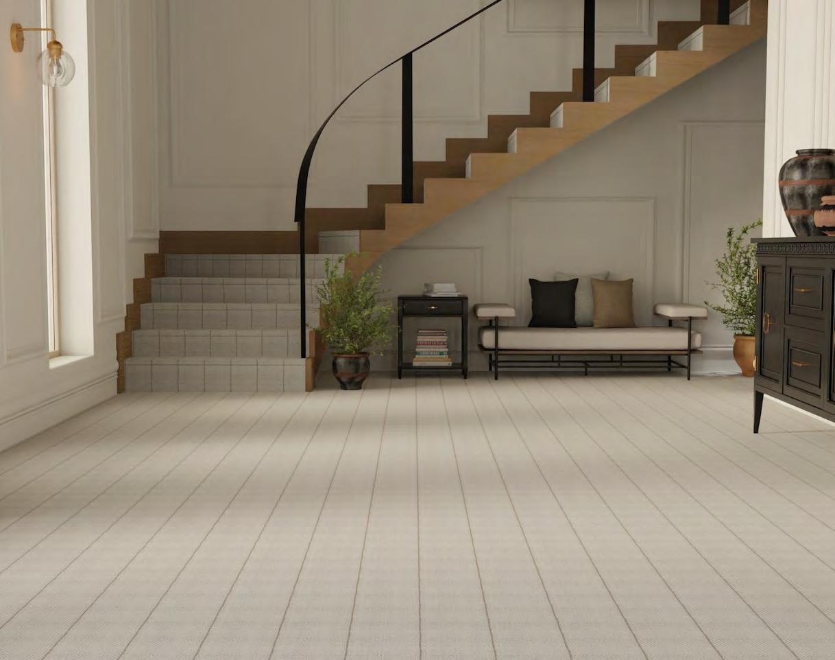 Northshore arranges tonal striations around a crisp chevron spine, giving spaces a strong, architectural read. The pattern shifts from fine lines to textured bands, creating depth and a deliberate, modern rhythm. Edges stay clean, proportions feel measured, and rooms gain instant structure. This collection showcases graphic poise with studio-level precision.