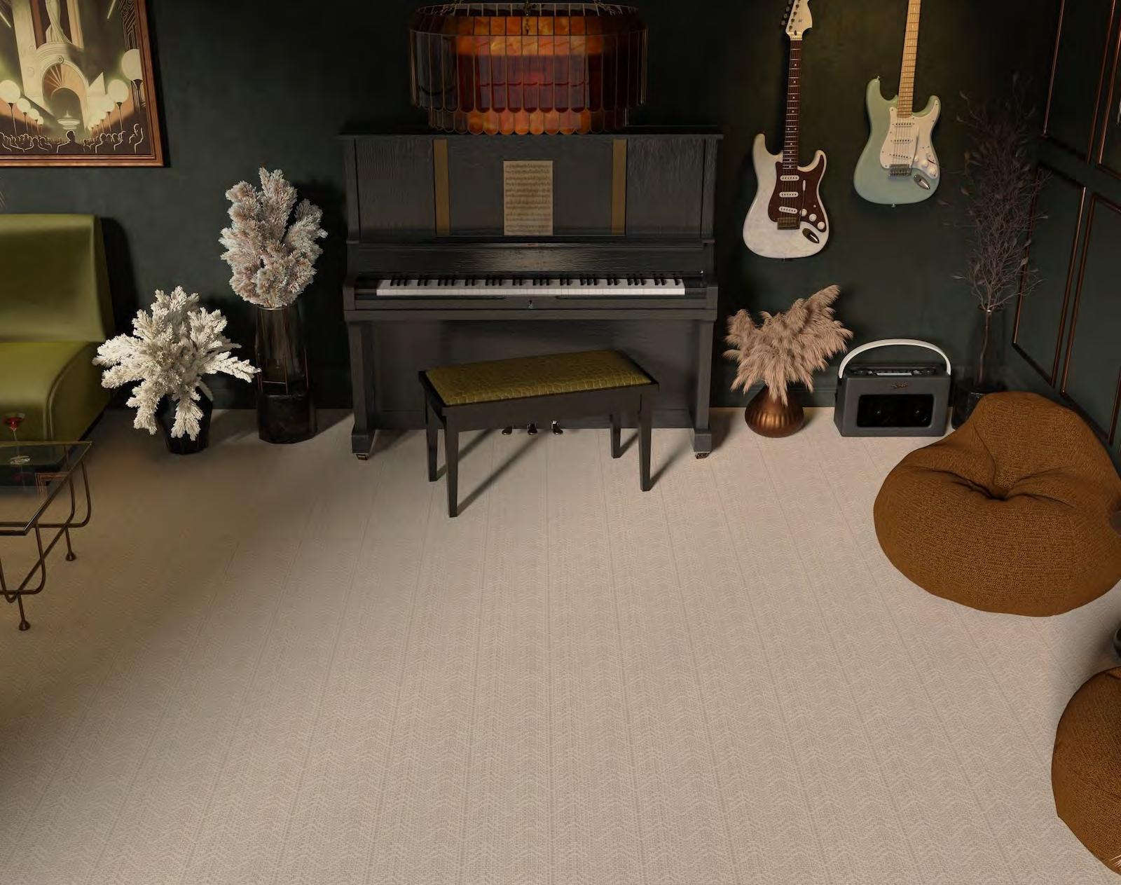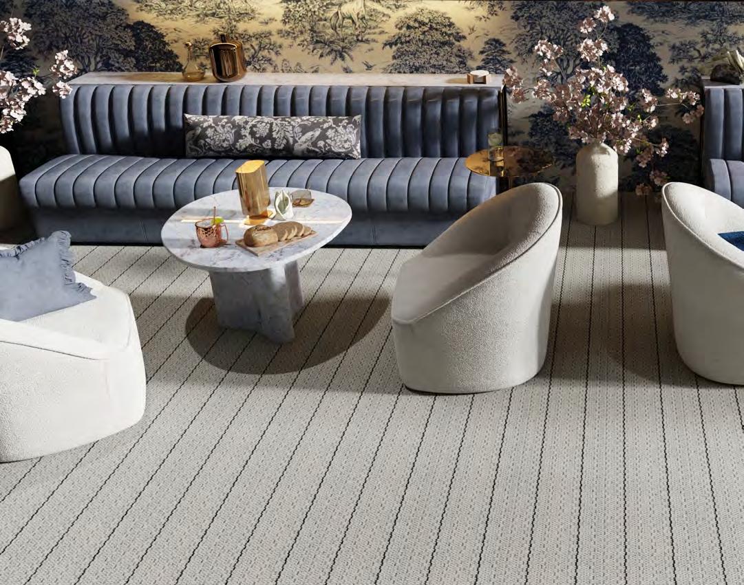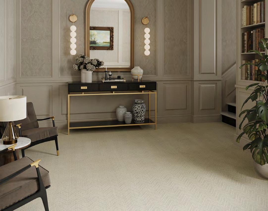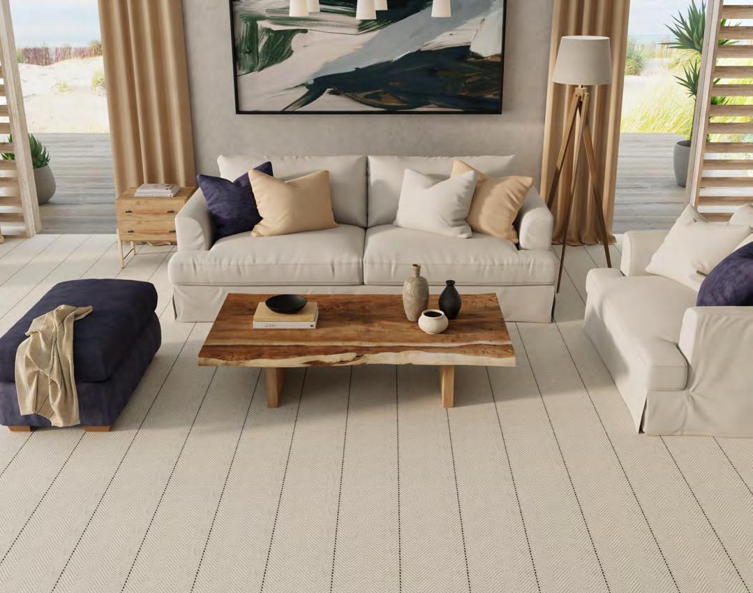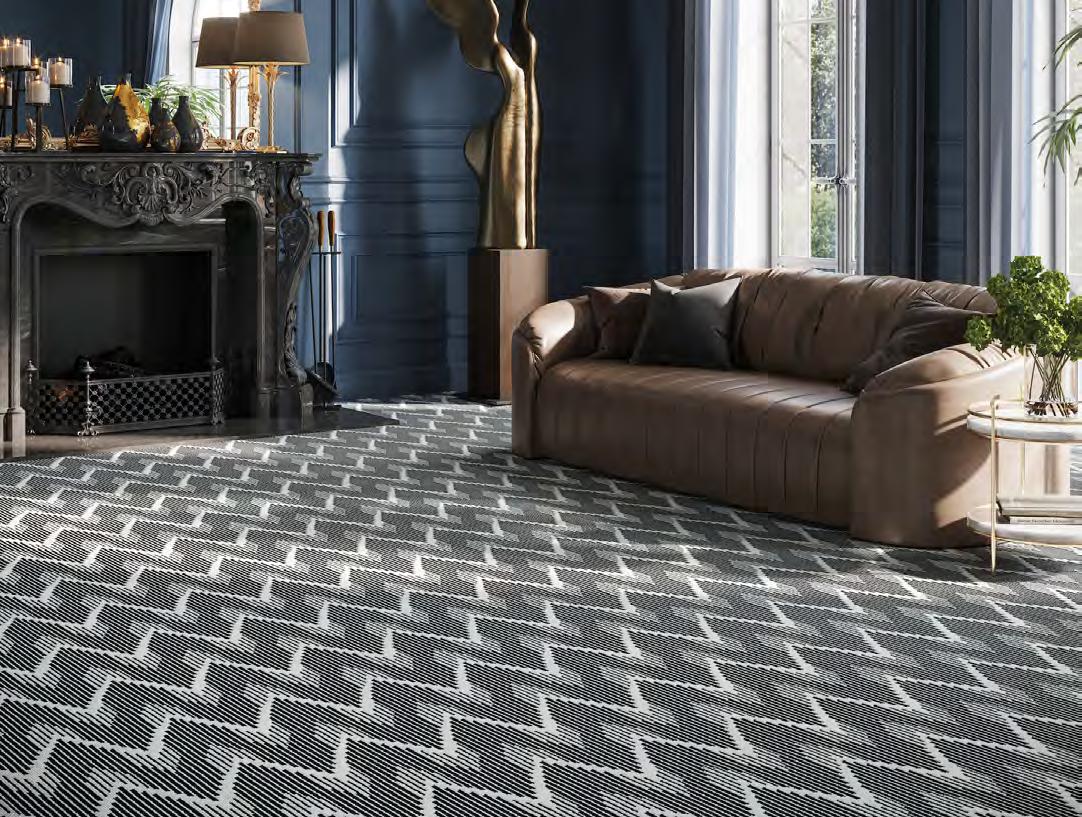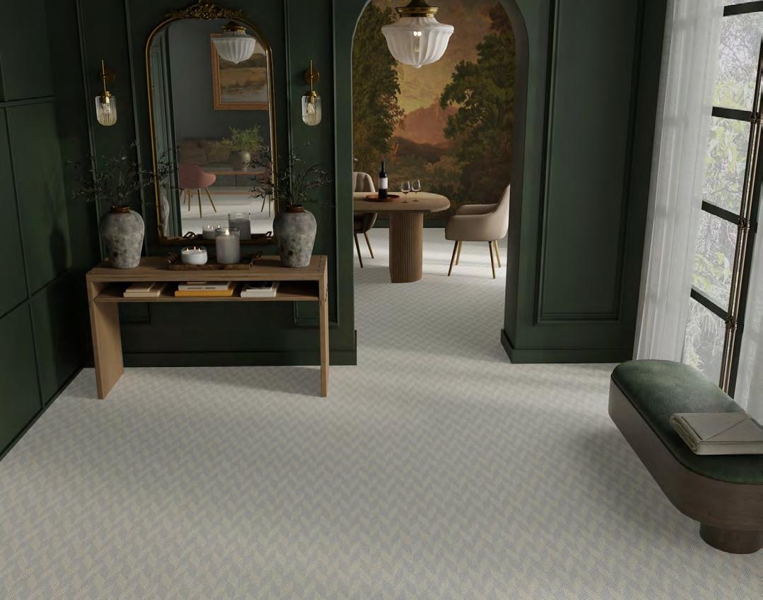 Northshore arranges tonal striations around a crisp chevron spine, giving spaces a strong, architectural read. The pattern shifts from fine lines to textured bands, creating depth and a deliberate, modern rhythm. Edges stay clean, proportions feel measured, and rooms gain instant structure. This collection showcases graphic poise with studio-level precision.
