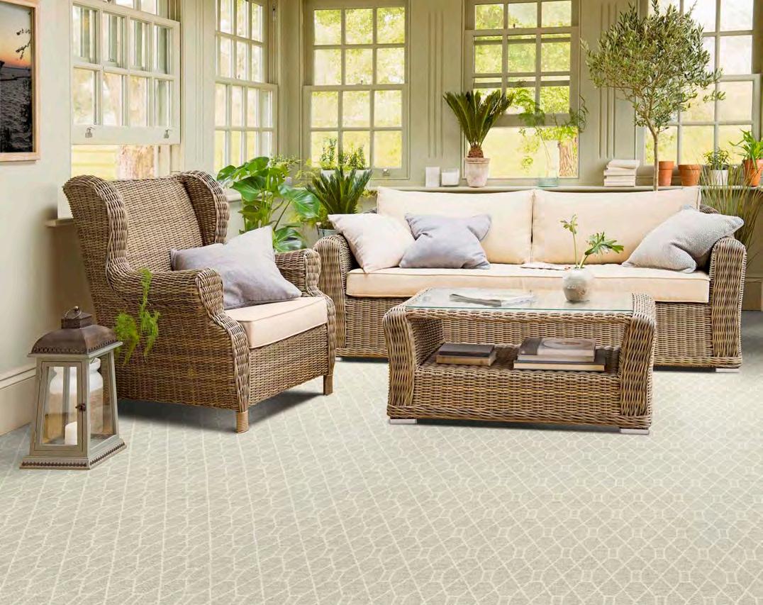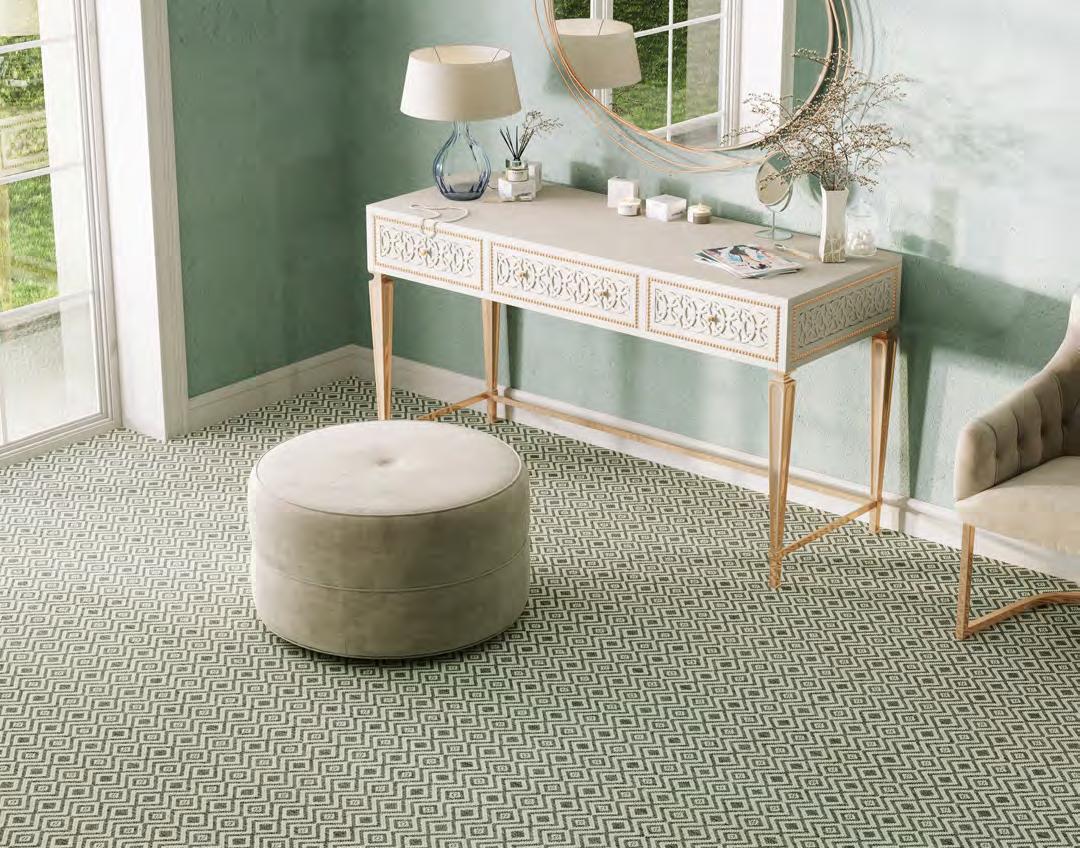 A delicate ribbon trellis softens the edges of the diamond-patterned Cherish collection. Completing this amiable aesthetic is a peaceful palette relayed on a tonal, textural construction that is easy on the eyes and soft to the touch.
