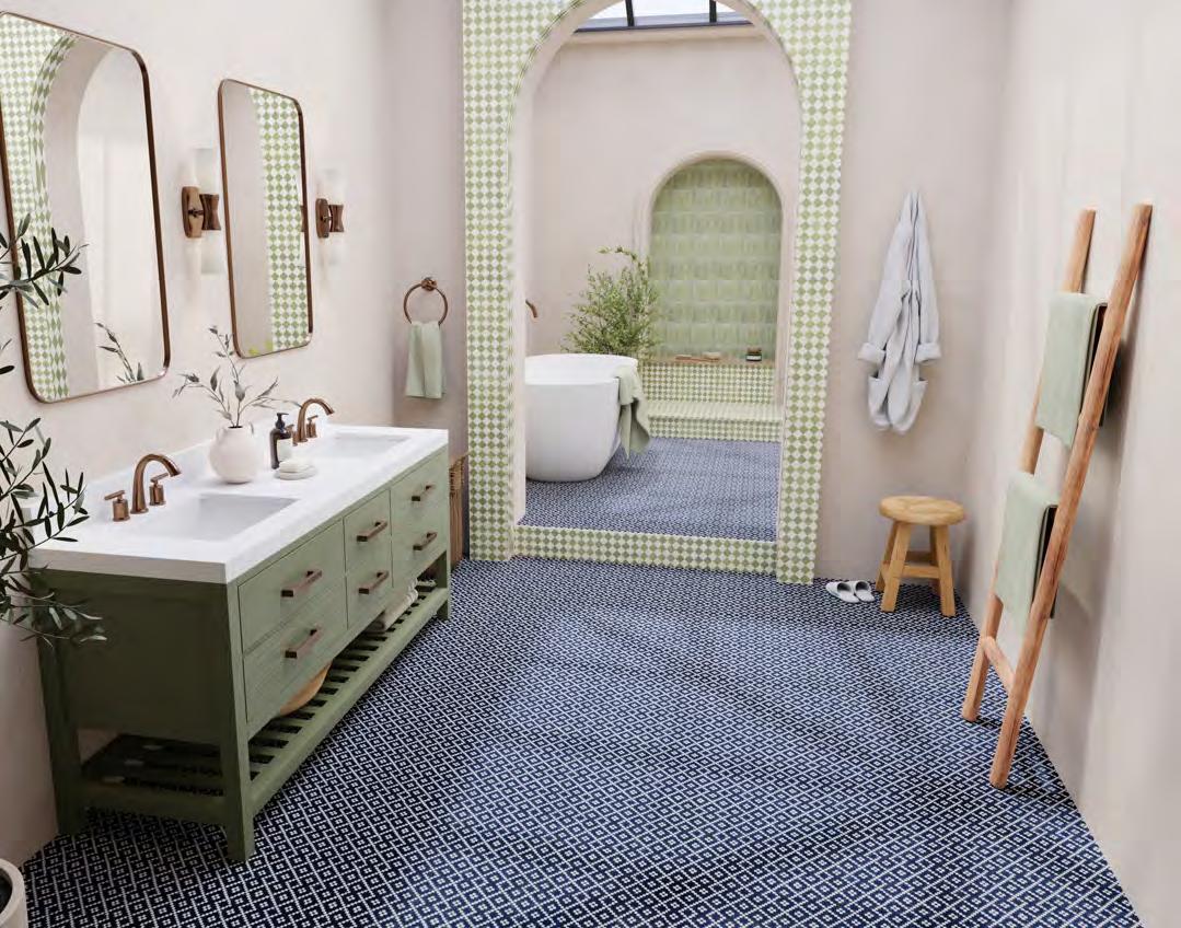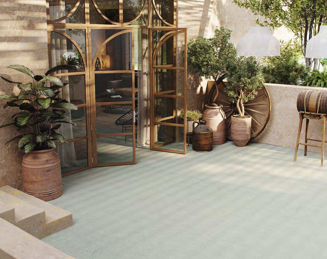 Prisms collection showcases a striking interplay of angles and dimension, with a modern herringbone-inspired pattern that feels both bold and refined. Offered in grey, beige, blush, robin's egg, silver, and moss, this collection adds a fresh and tailored touch to any interior.