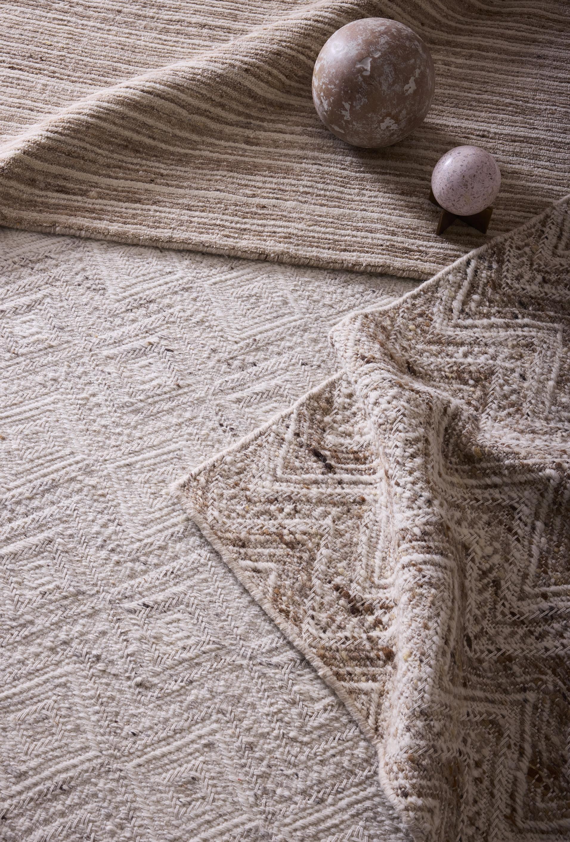Step onto a new rule of measurement, one that exchanges rigor for tolerance. Keros is a oneof-a-kind collection of rugs and carpets handwoven of an all-natural wool and finished with hand-serged edges. Available in: Ivory.