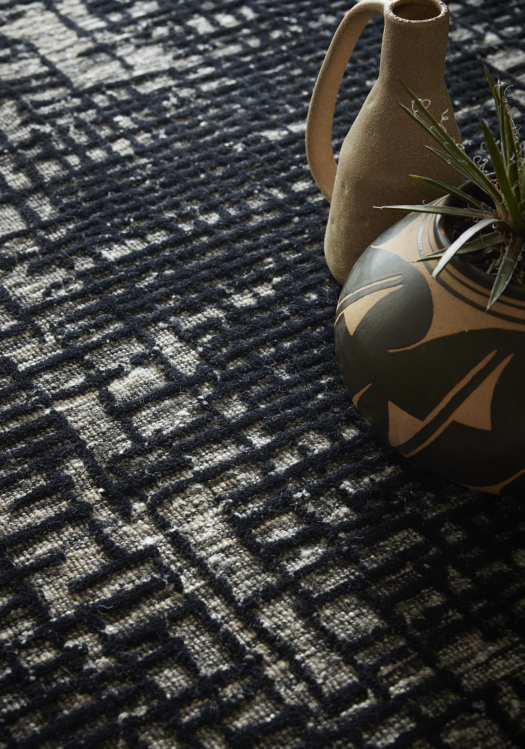 Graphic designs are artfully relayed like pen-and-ink sketches in the Nectar Collection. Presented in three dramatic patterns, these handwoven pieces are modern interpretations of structured linear design. Available in: Silver, Navy, Taupe, and Beige bases with a choice of White or Black pile.