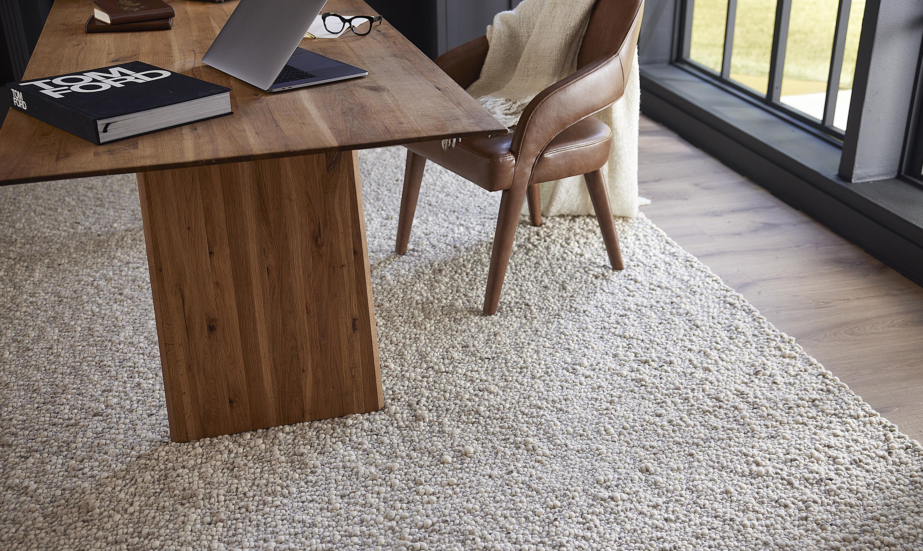 The natural crimp and coil of wool fibers give it a distinctive and refined texture that enhances the overall aesthetic of any space. This unique texture can vary depending on the weave, offering options from dense, plush textures to more textured loop and cut/loop piles.