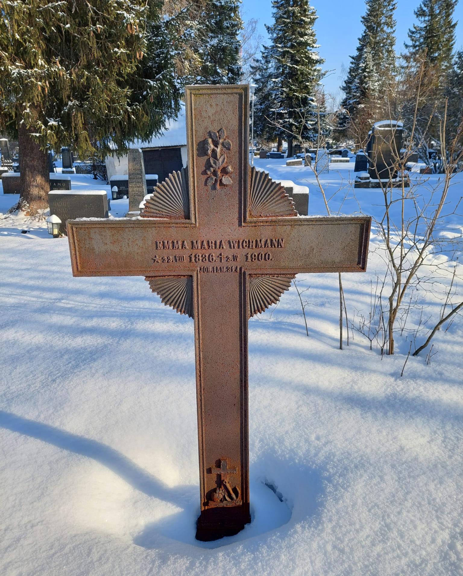 Emman hauta sijaitsee Haaralan hautausmaan vanhalla osalla. Hautaristi on kappelilta päin katsottuna ensimmäisen käytävän vasemmalla puolella, ensimmäisen alueen keskiosassa.