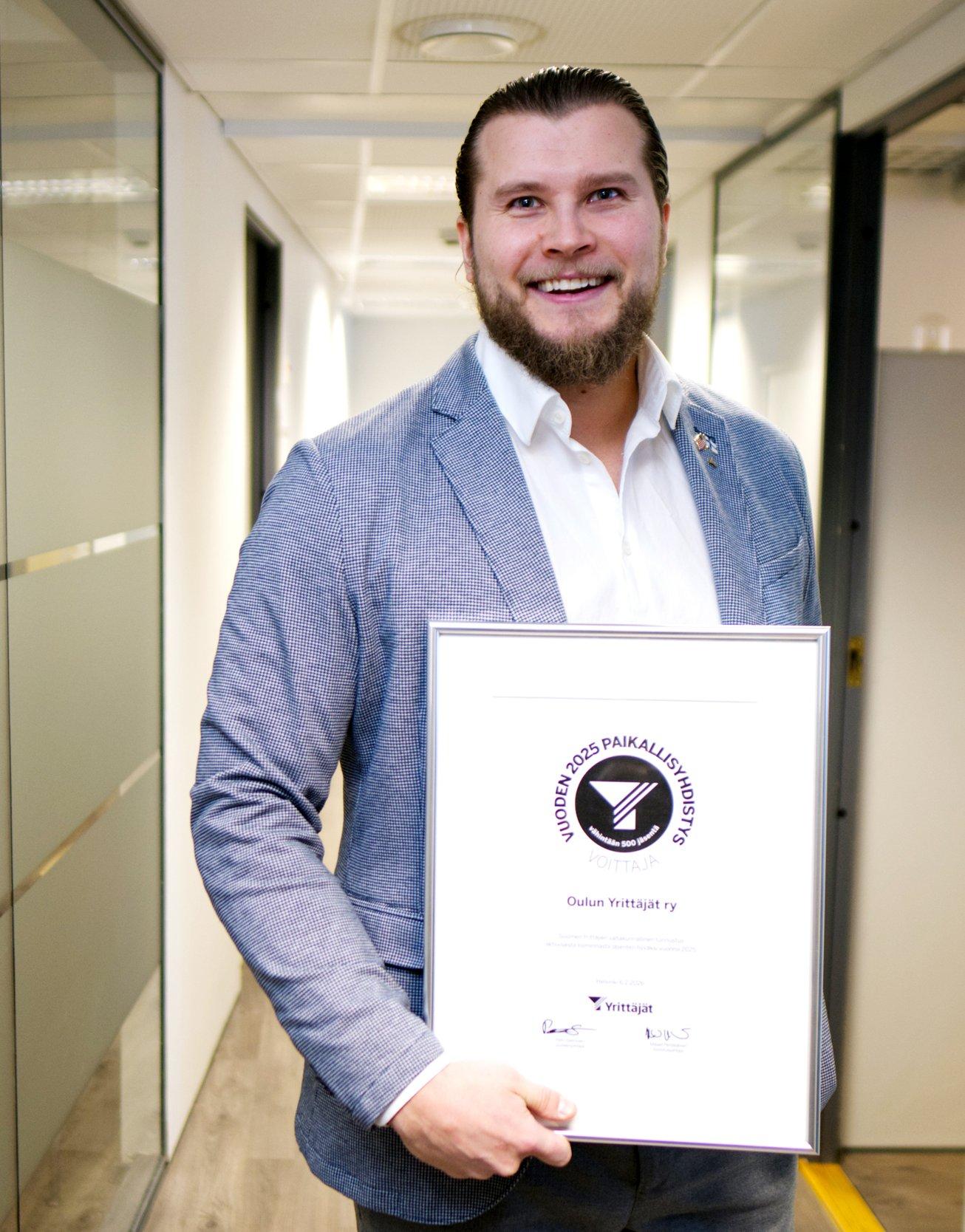 Oulun Yrittäjät paras paikallisyhdistys Oulun Yrittäjät valittiin vuoden 2025 Suomen parhaaksi paikallisyhdistykseksi. Palkinnon perusteluina on vahva kasvu, monipuolinen edunvalvonta ja laaja-alainen jäsenistö.