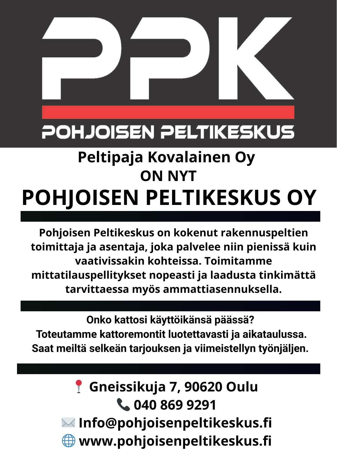 Kannattaa tulla myös mukaan eri FB-ryhmiimme: Pohjois-Pohjanmaan hankintaneuvoja Maakunnallinen omistajanvaihdospalvelu Nuoret yrittäjät Yksinyrittäjät Seniorit X: @PPYrittajat Yrittäjyyden uusimmat uutiset ja ajankohtaisimmat teemat.